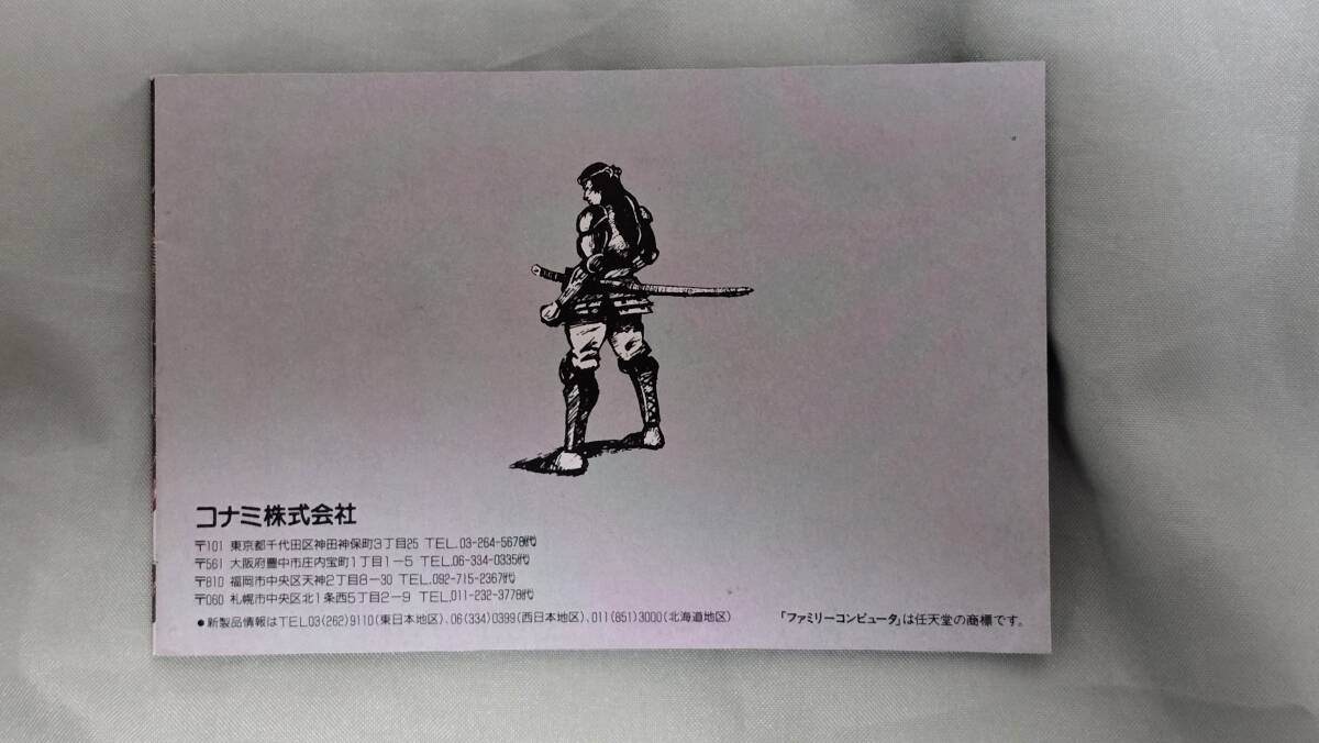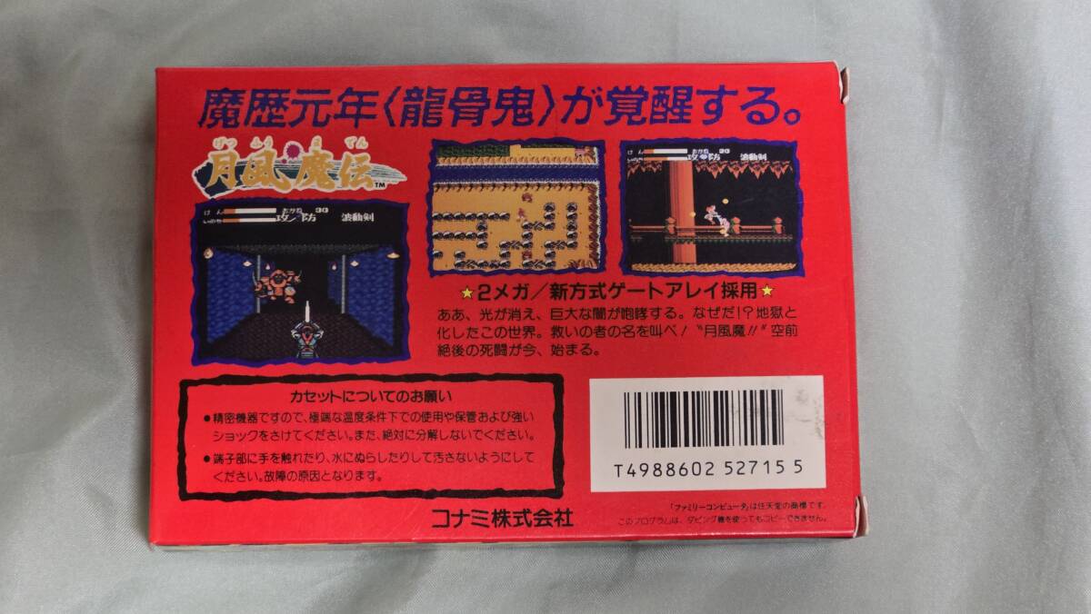 | コナミのファミコンソフト「月風魔伝」です。 ニューファミコン実機にて起動と簡易なプレーは確認しております。 状態は写真のとおりです。カセットに落書き等はありません。マニュアルも目立つ折れなどはありません。外箱もきれいなほうかと思います。 ただし、状態についてはあくまで主観となりますので、神経質な方は入札はご遠慮ください。 ●付属品 ・マニュアル ・キャラカード ・チラシ ・外箱 | ||