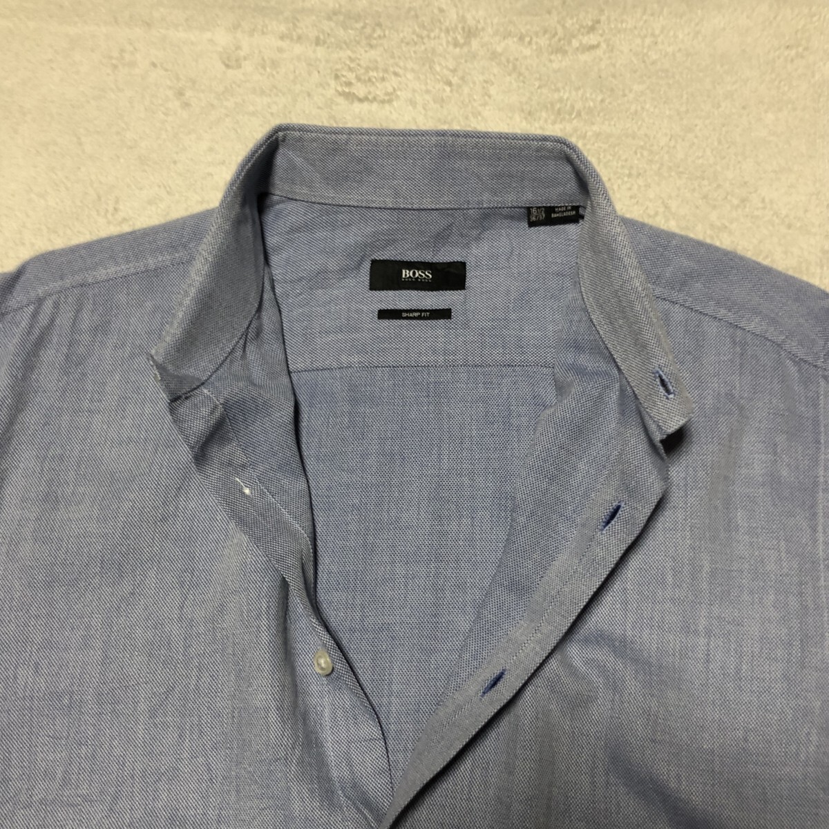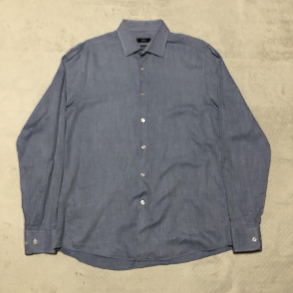 HUGO BOSS ヒューゴボス 長袖シャツ レギュラーカラー スリムフィット デニム調カラー 16-12 Mサイズ相当