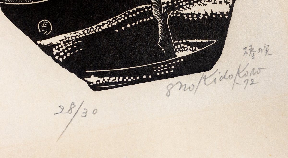 | 【SHIN】城所祥 「椿の実」 木版画 ed.28/30 シート 静影の版画家 鑿の会 木口木版画 |