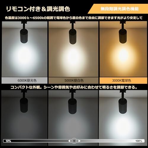 【新品未使用】ダクトレール スポットライト 調光 調色 リモコン付き 10W 大光量1180lm 100W相当 レールライト スポ