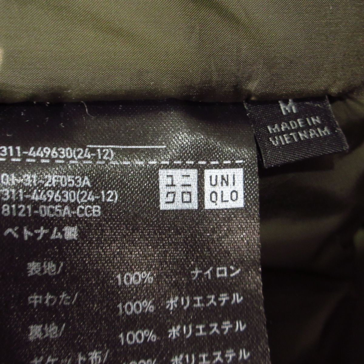 ◯極美品!UNIQLO ユニクロ 防風 パデッド コート ジャケット 中綿 防寒 あたたかい!メンズ カーキ Mサイズ◆WA0305