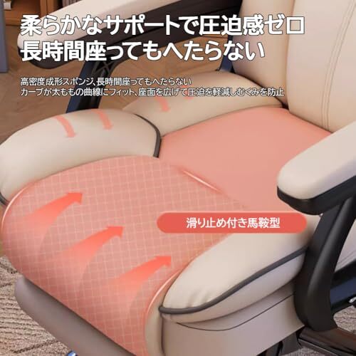 【ふかふかクッションで包み込むような座り心地】:座面・背もたれにはボリューム感のある高密度ウレタンをふっくら詰め、長時間座っても沈みすぎず程よい弾力で体を支えます。全体に均一に充填されたクッションにより、腰まわりや太ももが安定して休めるため、長時間のゲームセッションやテレワークでも疲れにくい快適性を実現。げーみんくチェアとしてのしっかりとした座り心地は、オフィスチェアや一般的な椅子を求めるユーザーにも満足いただけます