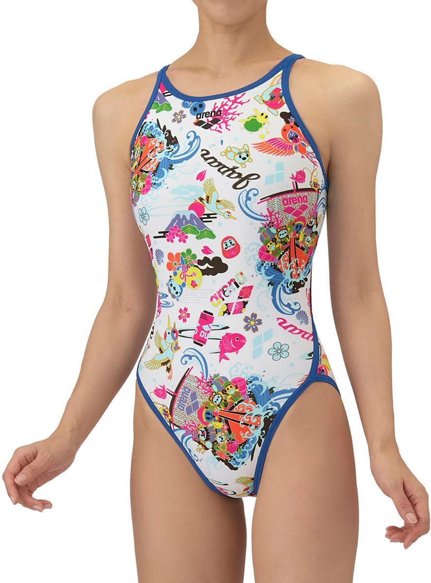 | 詳細 | トレーニングカテゴリー「TOUGHSUITシリーズ」。大会に向けて練習を重ねる頻度が高いスイマーにオススメの練習用水着。環境に配慮したリサイクルポリエステル素材「タフスキンEP」を使用し塩素に強く長持ち。全てのスイマーに人気のアリーナくんの総柄ワンピースタイプ。日本の縁起の良い和柄と海と親和性のある宝船がポイント。宝船が象徴する繁栄や幸運が着用するスイマーたちへ届くよう願いを込めたデザイン。アリーナくんと仲間たちが七福神になっている遊び心を表現。前身頃、後身頃共に黒の裏地付き。※この商品は縫製上、一点一点プリント柄の見え方に違いが生じますので予めご了承ください。 WHBLホワイト×ブルー SS,S,M,L,O 水着 スイムウエア オープンバック 水泳 競泳 スイミング スイム プール フィットネス トレーニング 練習 タフスキン ハードトレーニング レディース 女性 大人 |