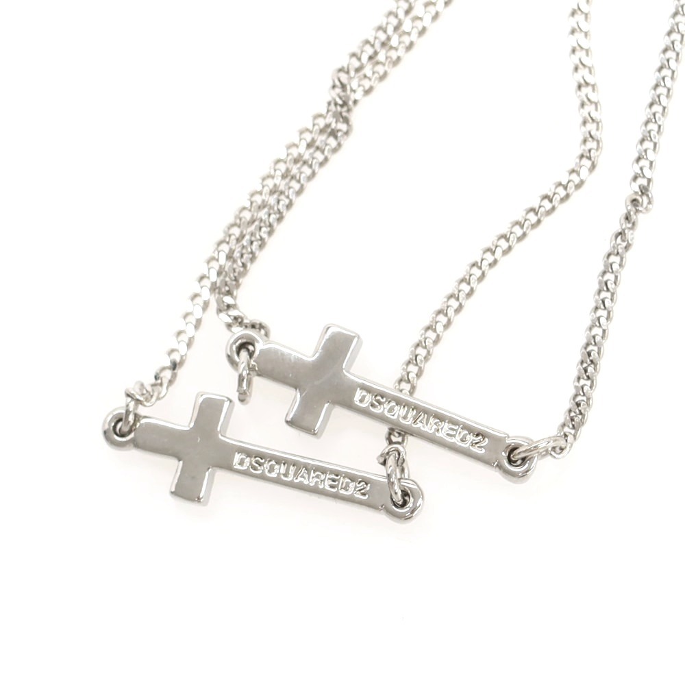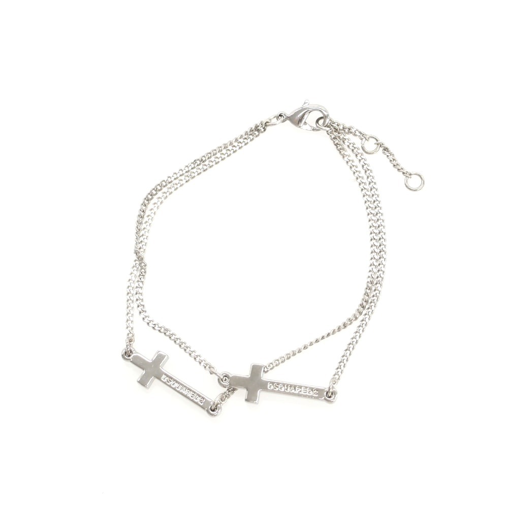 【新品】ディースクエアード DSQUARED2 2連チェーン クロス ブレスレット シルバー【M】