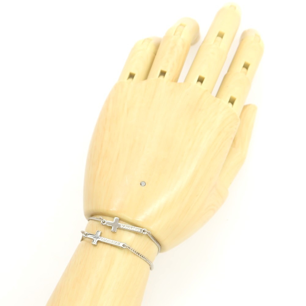 2連のチェーンデザインにクロスを配したブレスレットです。普段のコーデにさりげない洒落感をプラスしてくれるアイテムです。