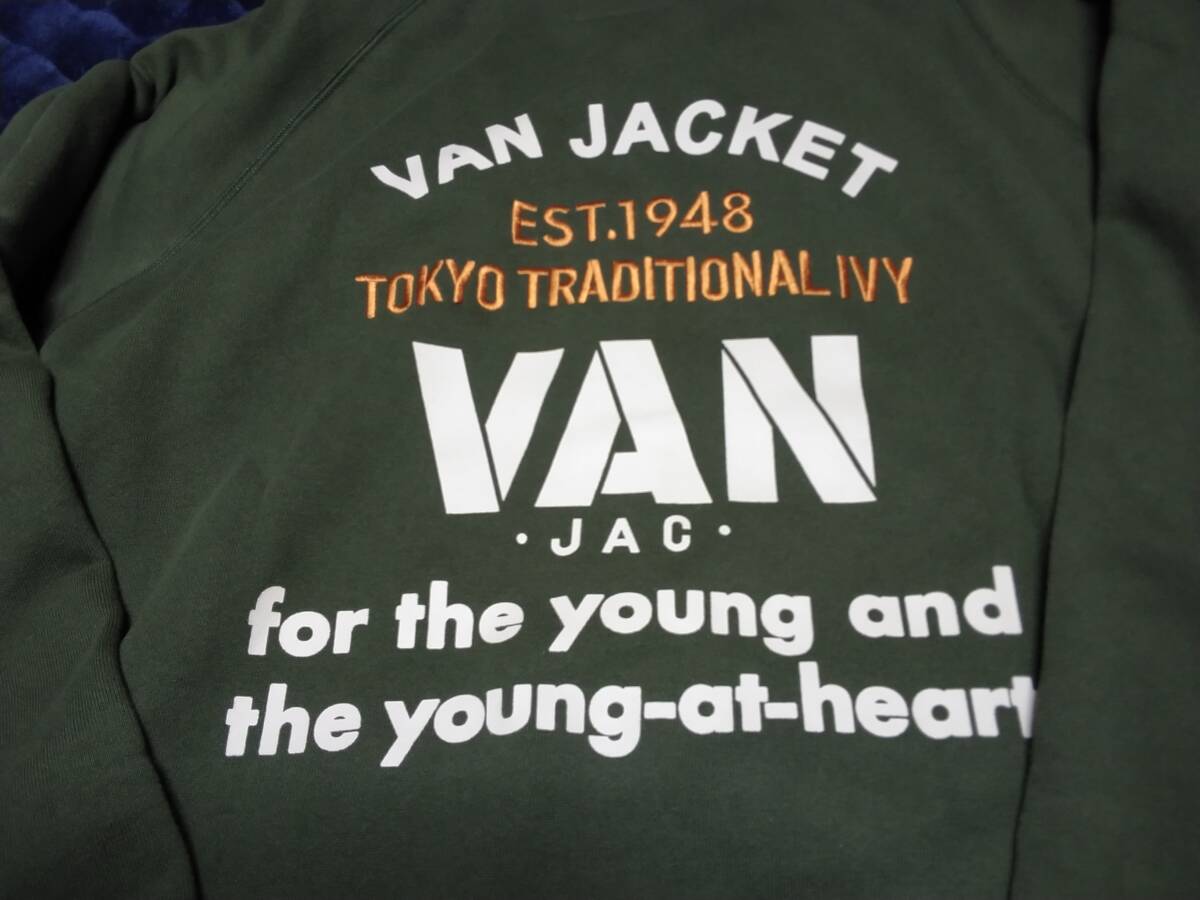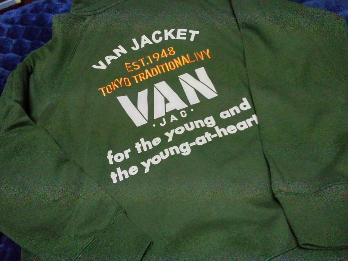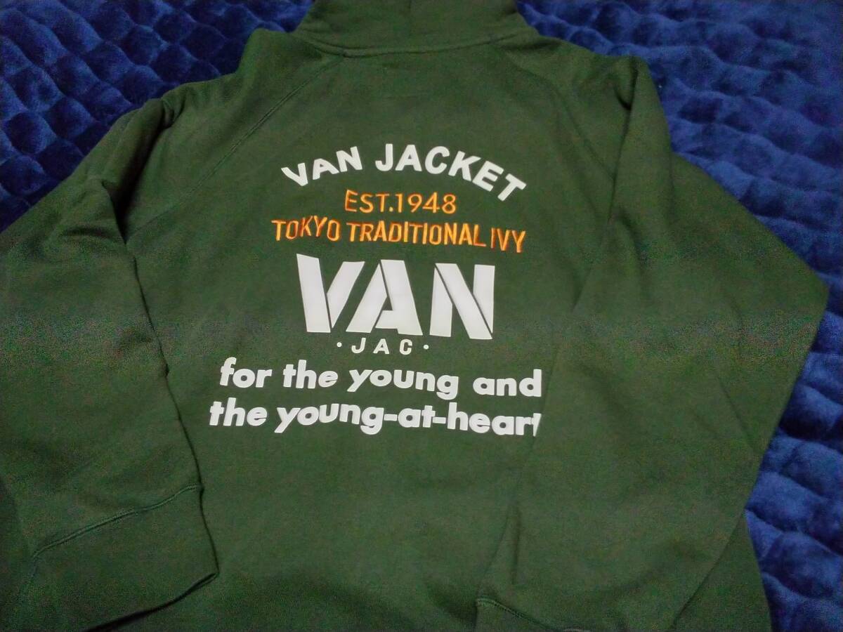 VAN JAC  長袖VANロゴプリント刺繍フード付きスウェットフルジップパーカー カーキ LL  新品未使用 アイビー