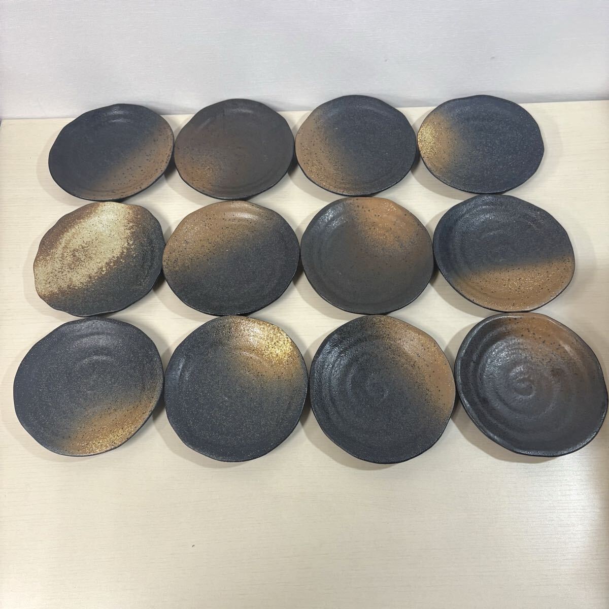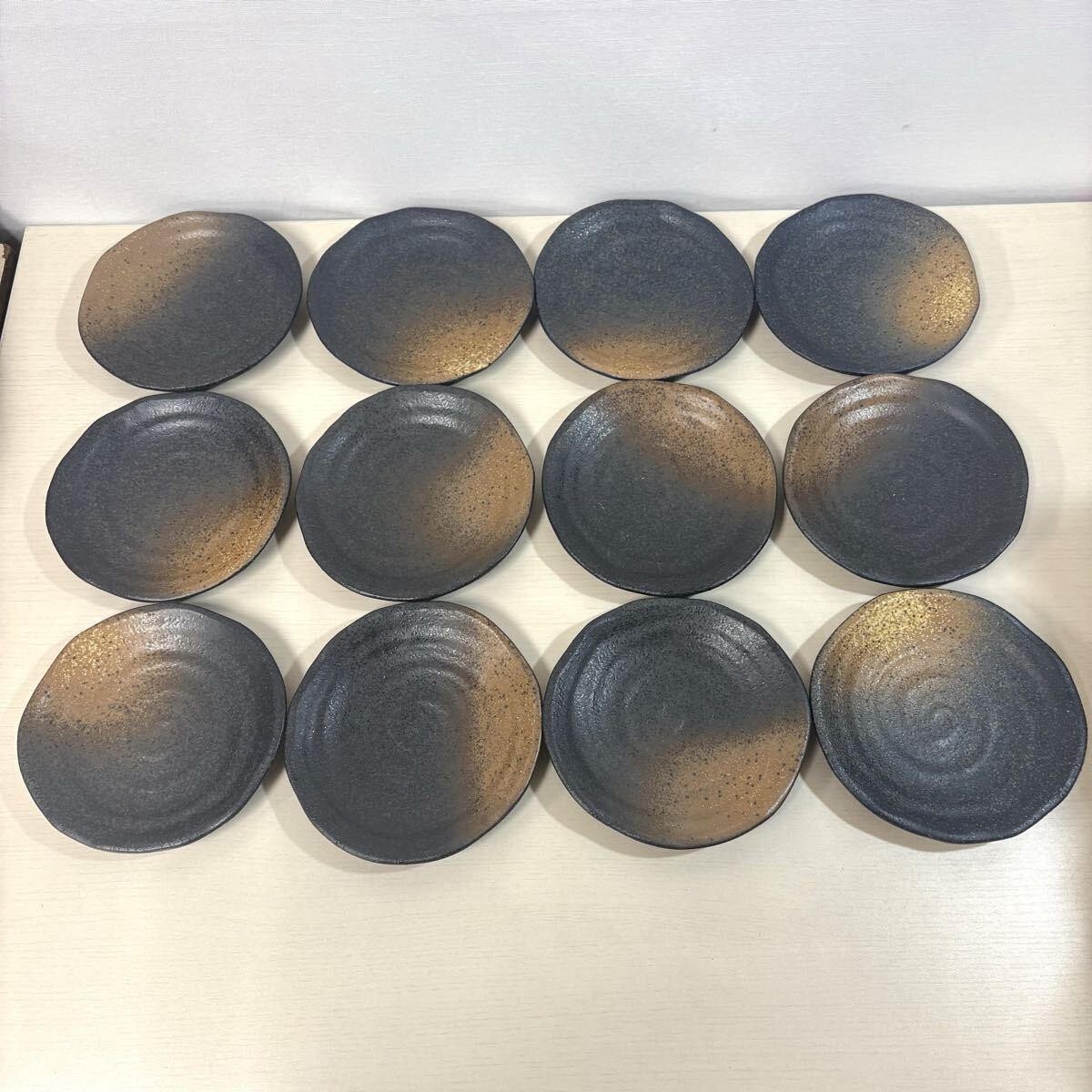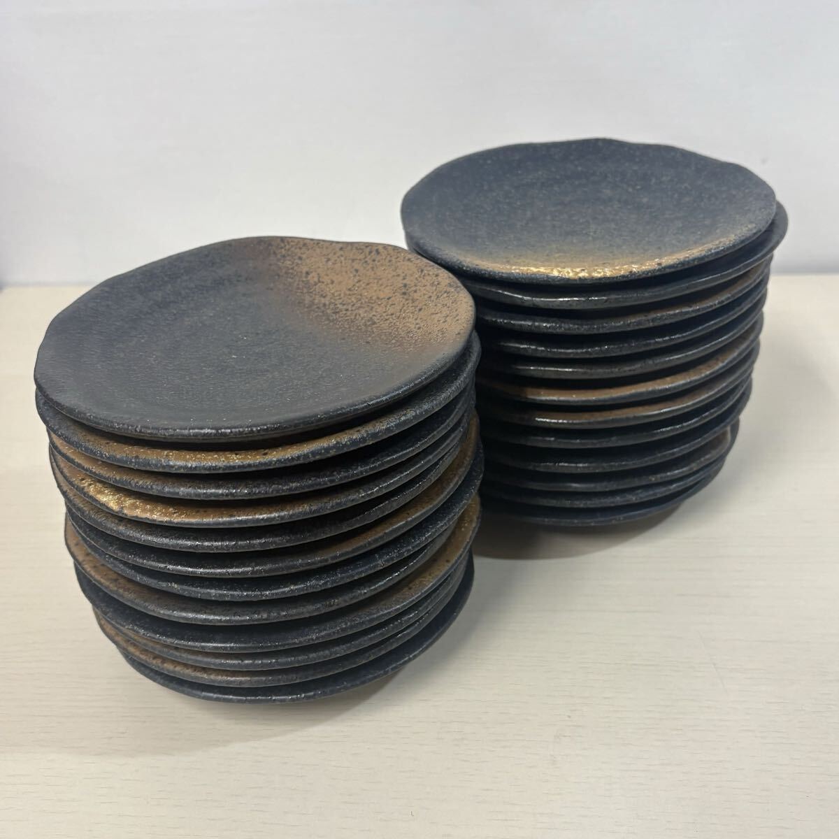 美濃焼 黒備前吹 銘々皿 24客セット 和食器 取り皿 串皿 小皿 業務用 居酒屋 料亭 美品 (11167E