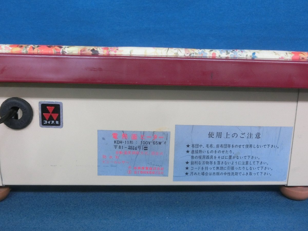 ●★38―015★足元ヒーター コイズミ 電熱面ヒーター 動作品 フットヒーター パネルヒーター レトロ 花柄 脚付 高さ 調整 [100]