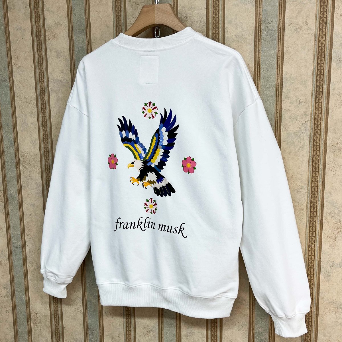 個性・トレーナー 定価4万 FRANKLIN MUSK・アメリカ・ニューヨーク発 エジプト綿100% 保温 柔らか 鷹柄 花柄 スウェット プルオーバー 秋冬 サイズ2