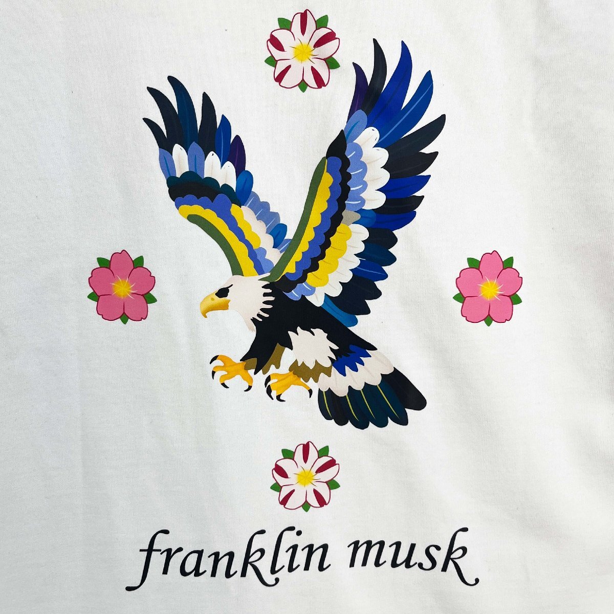 個性・トレーナー 定価4万 FRANKLIN MUSK・アメリカ・ニューヨーク発 エジプト綿100% 鷹柄 花柄 スウェット プルオーバー 秋冬 サイズ2