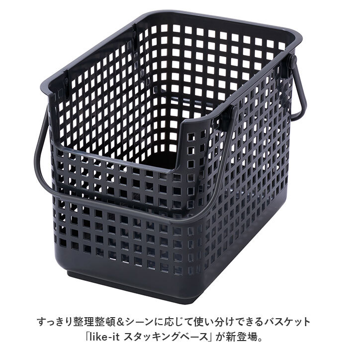 | 商品説明 | ・・すっきり整理整頓&シーンに応じて使い分けできるバスケット「like-it スタッキングベース」が新登場。 ・【使いやすさばっちり】 ・柔軟性のある素材で作られたバスケットは、中に入れるものを傷つけにくい!単体でもセットでも使いやすいスクエアタイプ。 ・【しっかり入るワイド設計】 ・通気性が良く洗濯物をポイッと入れたり、高さのある洗剤ボトルなどもラクラク収納♪中身がひと目で確認できて、サッと出し入れできる入り口付きのオープンタイプ。 ・【便利なハンドル付き】 ・両サイドにハンドルが付いているから、持ち運びもラクラク。 ・【簡単スタッキング】 ・ハンドルを垂直に立てて押し込むと支えに。その上に、別売りのスタッキングトップを積み重ねOK。2本のハンドルにかかる荷重はMAX5kgまで。(※スタッキングトップは当店別ページにて販売中です。商品コード:lbb07c) ・【環境にも配慮】 ・本体に、サトウキビ由来のバイオマスプラスチックを約30%使用。環境にもやさしいアイテム!安心の日本製。 ・【選べるカラー】 ・空間に馴染みやすいカラーをラインナップ。装飾のないシンプルなデザイン。 |