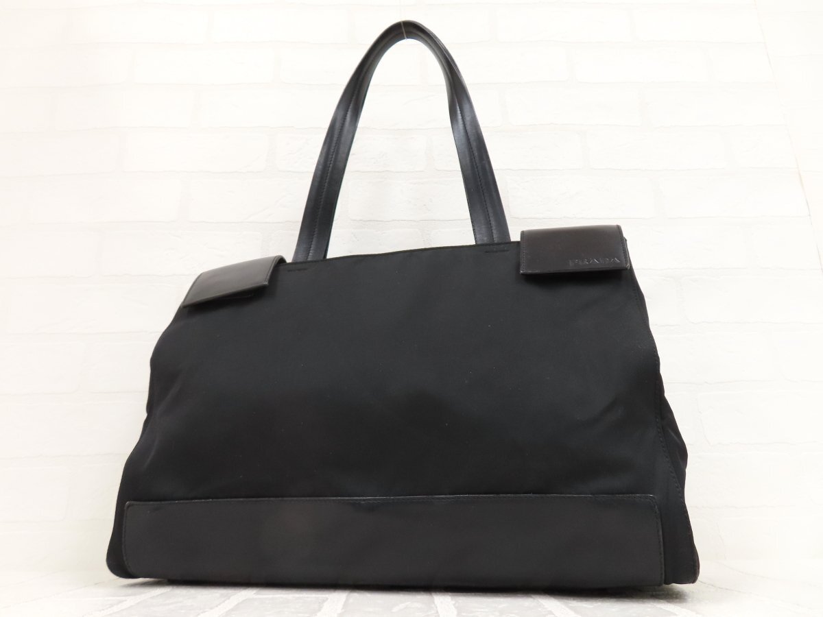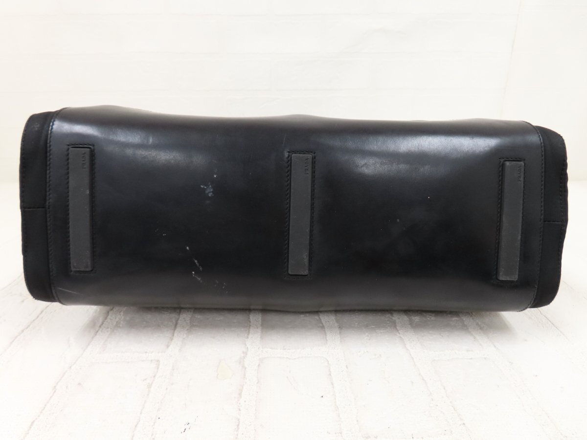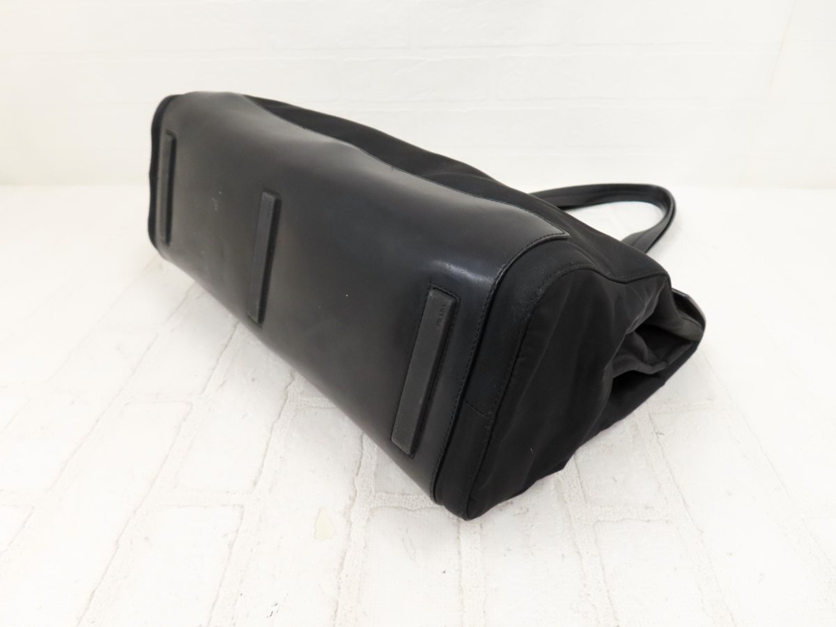◆超美品◆PRADA プラダ◆ナイロン カーフ レザー 本革◆トート バッグ◆ブラック シルバー金具◆イタリア製◆ヴィンテージ◆A14257