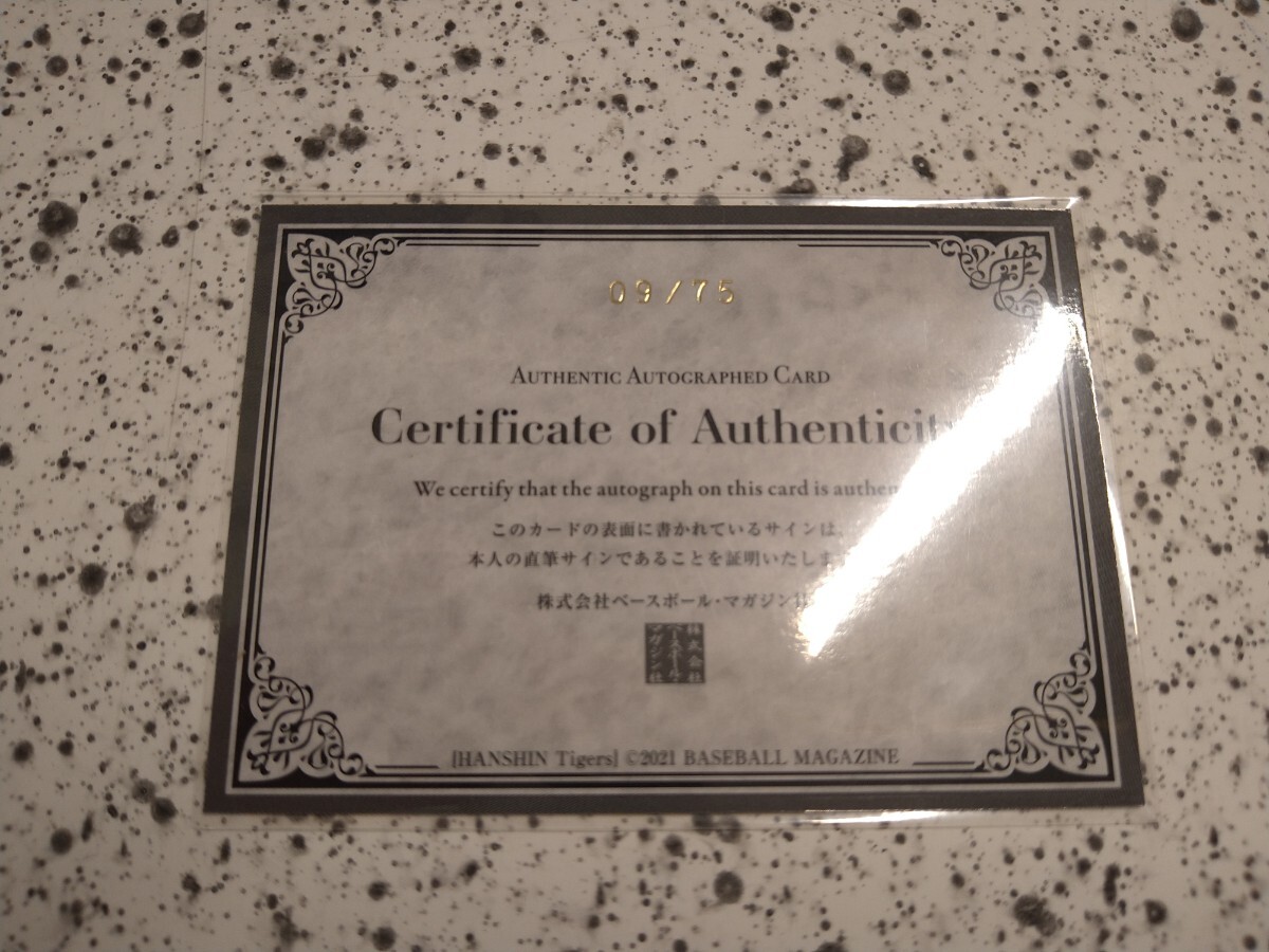 商品は、2021 BBM 阪神タイガース2021に封入されておりました 糸原 健斗選手 75枚限定 直筆サインカードになります。