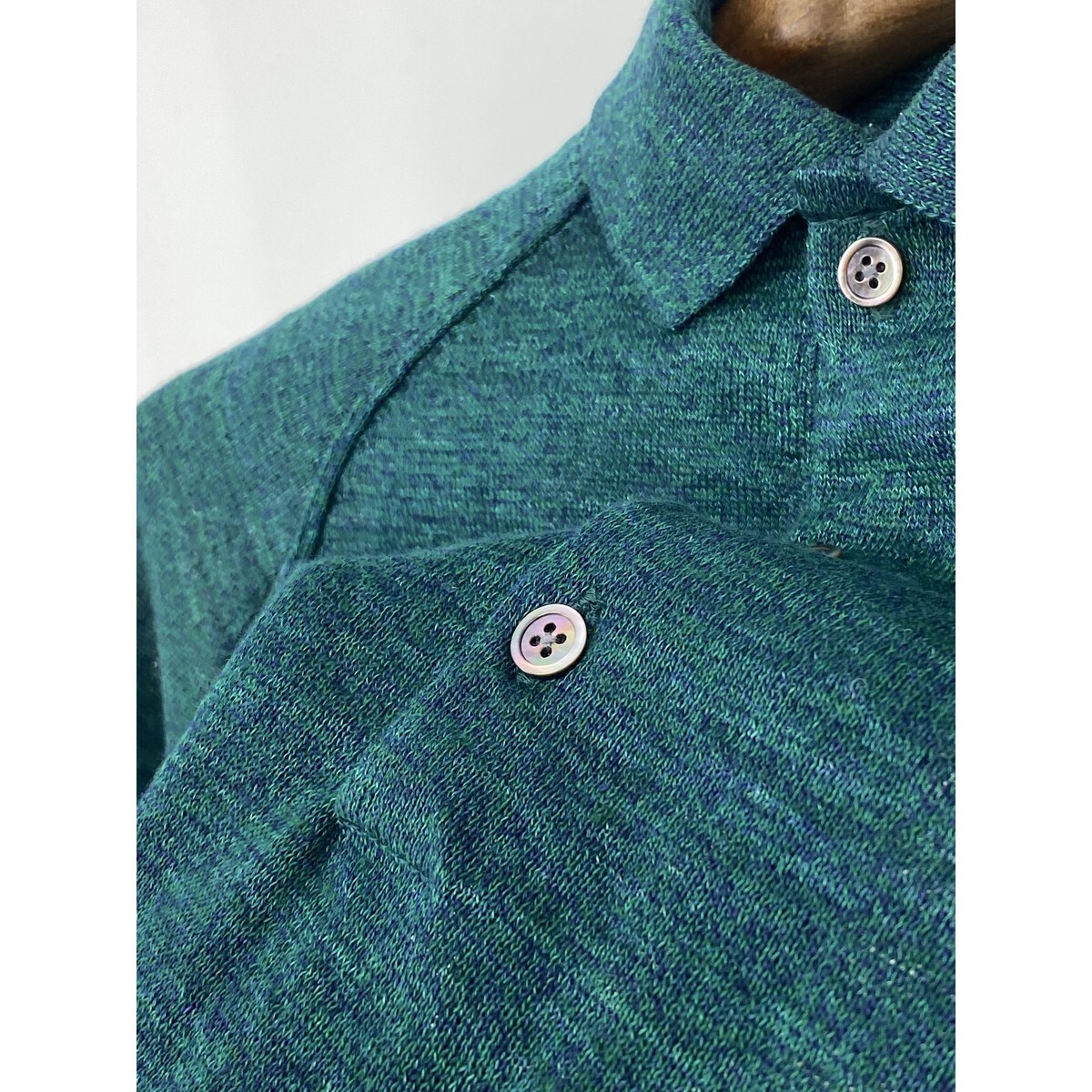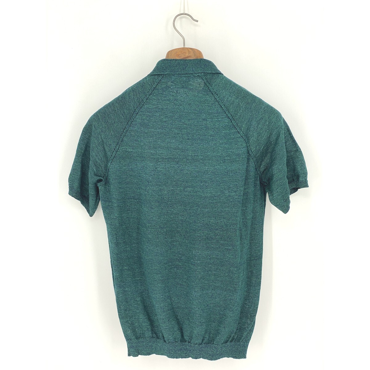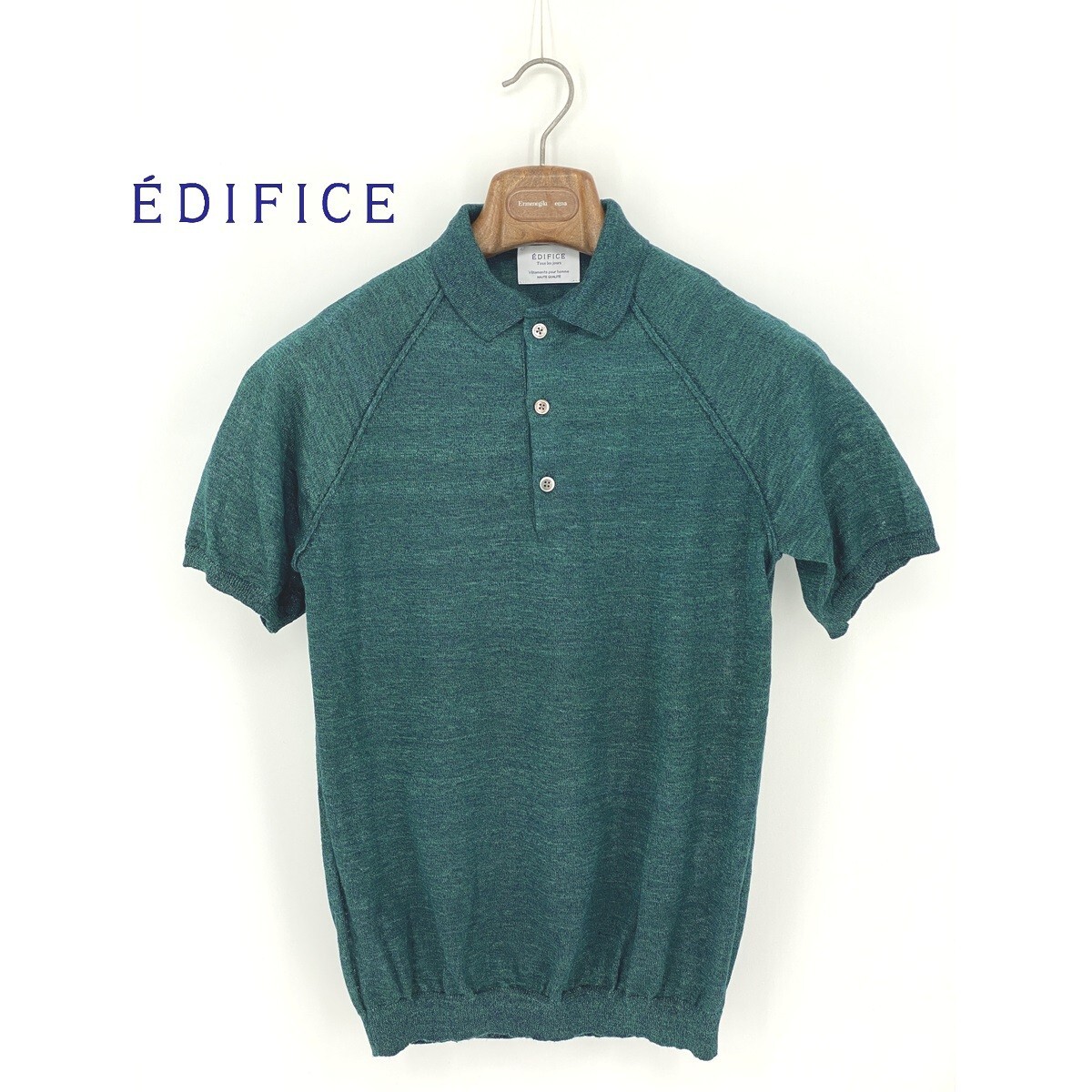 B0578/ 2枚セット 極美品 EDIFICE エディフィス リネン100% ヘンリーネック 七分袖 半袖 ニット リブ セーター 44 S程 青 緑 メンズ