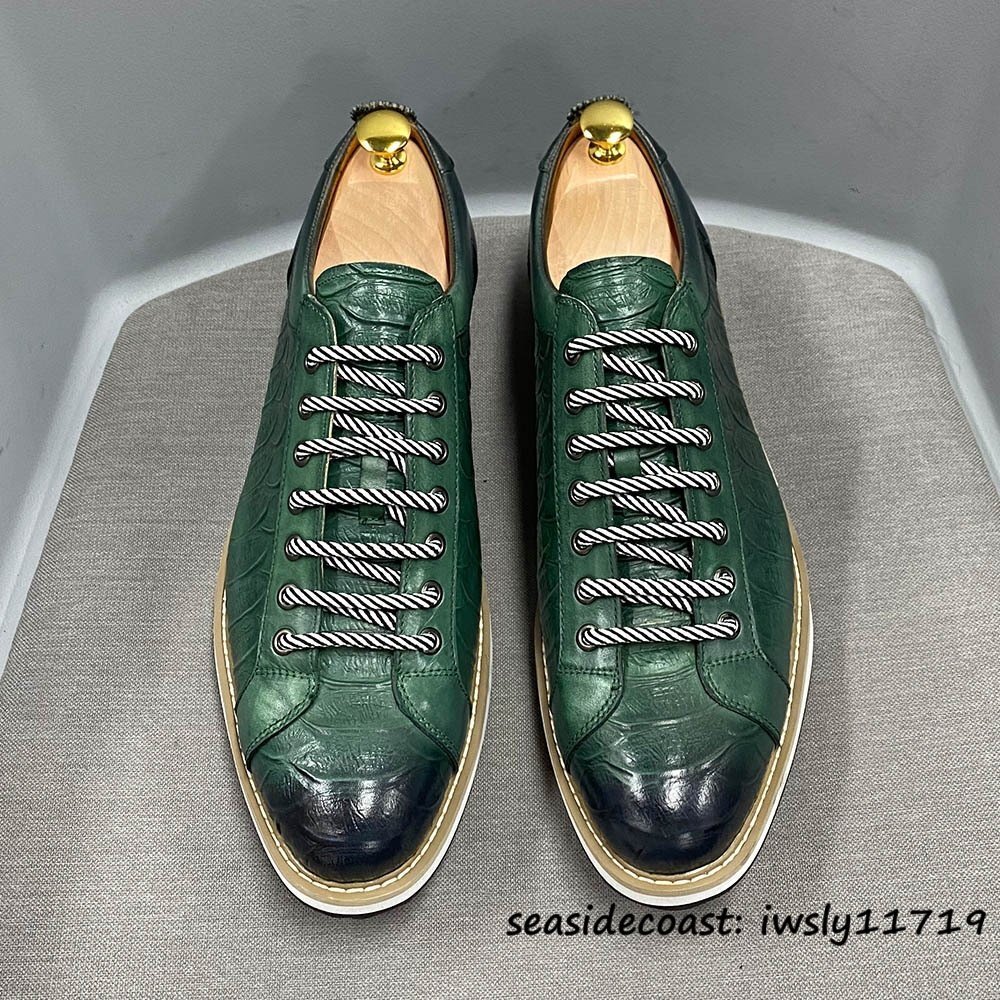 定価9万超◆最高級 スニーカー 本革 レザーシューズ メンズ ビジネスシューズ 牛革 革靴 職人手作り紳士靴 軽量ローファー グリーン 28.0cm