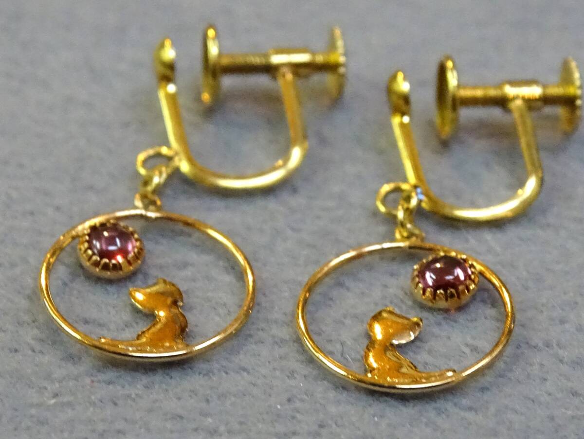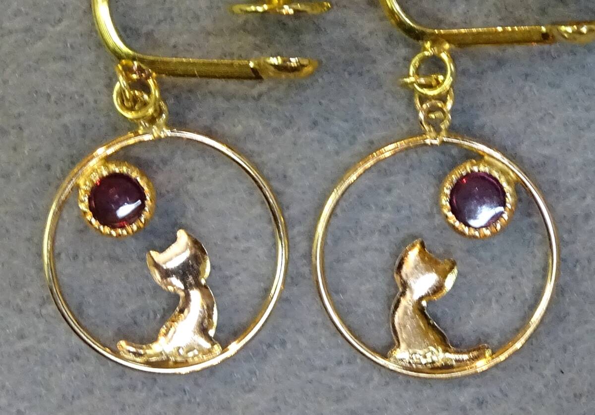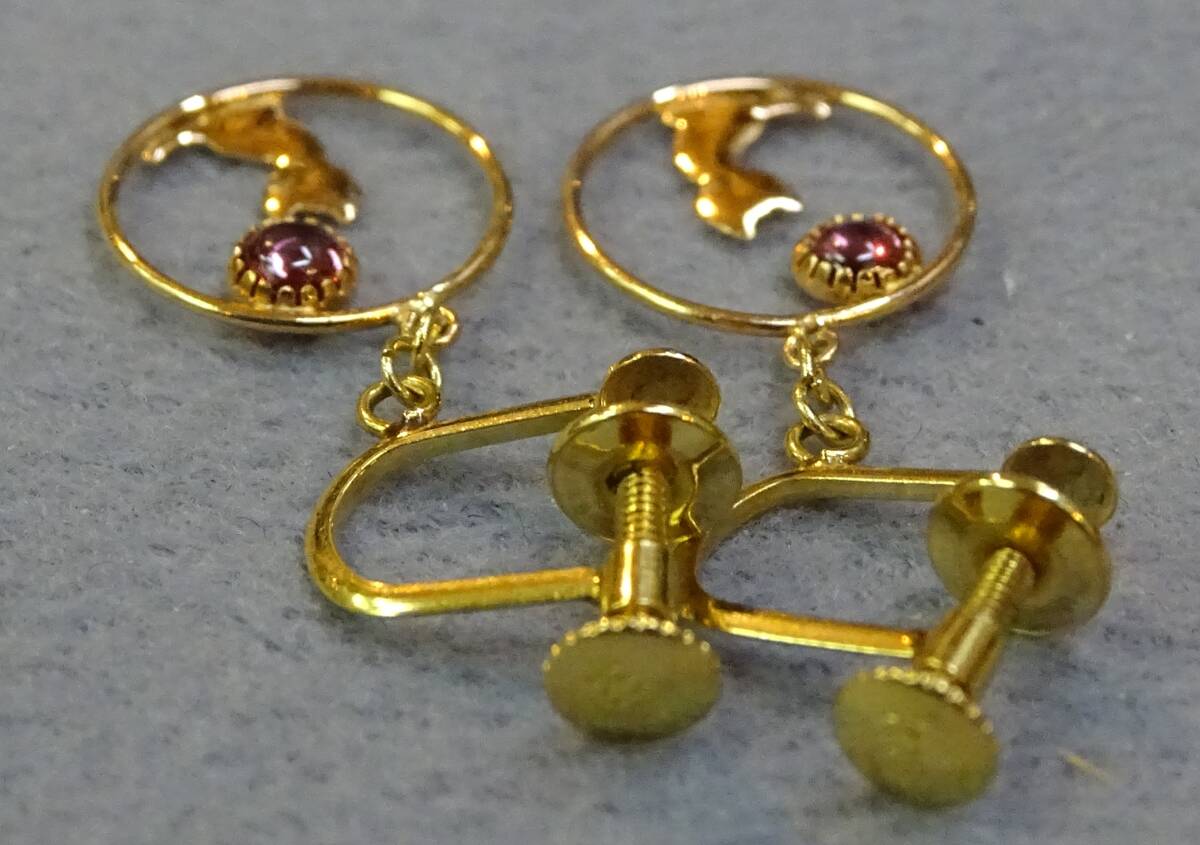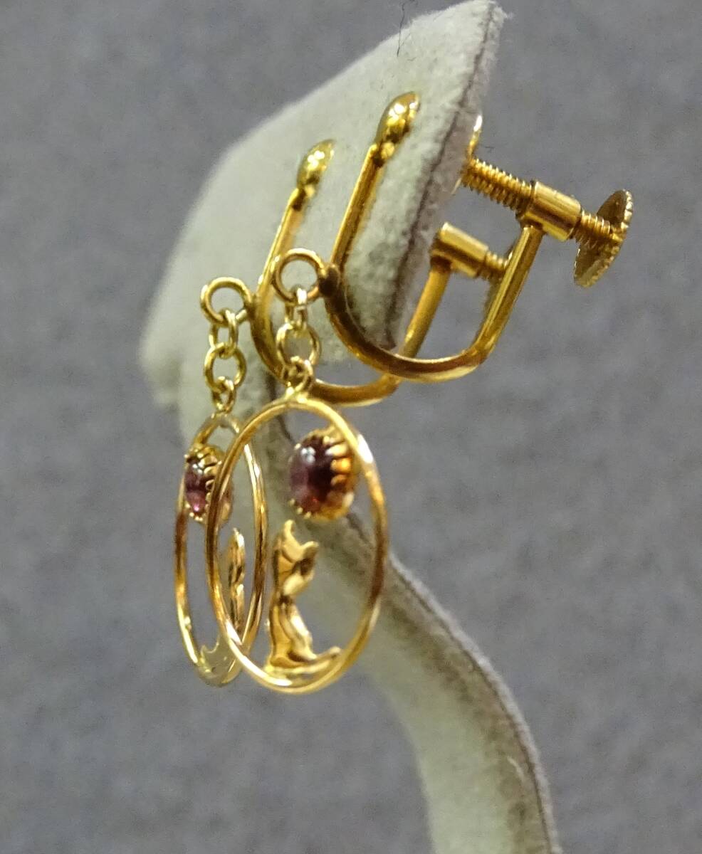♪希少・レア・貴重!【ネコ・猫ちゃん】 【K18製】【天然ロードライト・ガーネット】入り【イヤリング】(ねじ止め式金具)!!