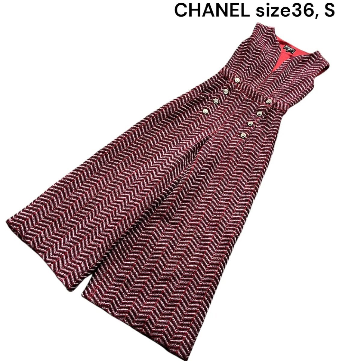●美品 シャネル CHANEL ココマークボタン ツイード オールインワン パンツ 36、 S レディース S5Q438