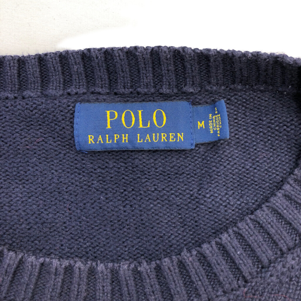 | 【商品管理番号】 R4255 【ブランド】 Polo by Ralph Lauren/ポロ ラルフローレン 【サイズ】 M 【実寸サイズ】 肩幅:約42cm 着丈:約66cm 身幅:約56cm 袖丈:約67cm 【主な素材】 表地 : コットン 【色】 ネイビー 【仕様】 55203 【状態】 汚れ:肩、首元、袖、袖先 キズ:首元 破れ:首元 特記事項:使用感あり、色褪せ、毛羽立ち | |||