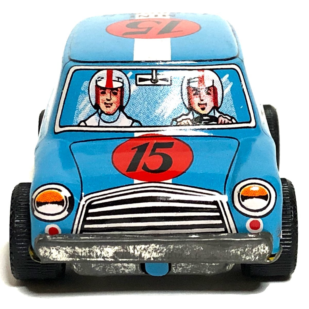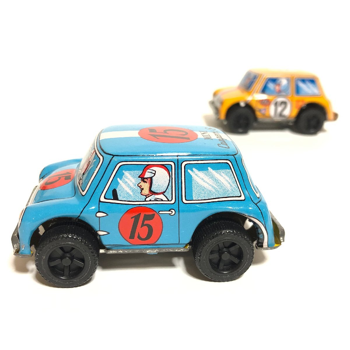 この三幸製作所製の3吋 MINI Cooper S MINI Pocket Vihicles SAX ミニクーパーS ミニポケット カー ⑮ 水色は全体的にデフォルメされ 作られていますが、ミニ独特のシルエットを綺麗にプレス形成しており、さわやかな水色に大きくはみ出した小さなタイヤが雰囲気を醸し出しています。