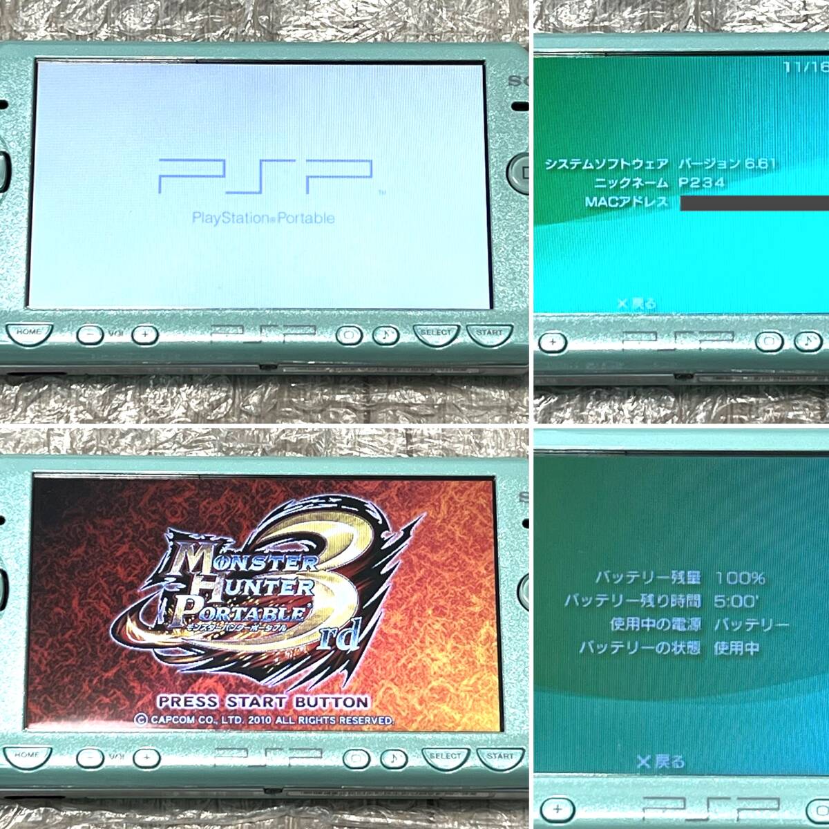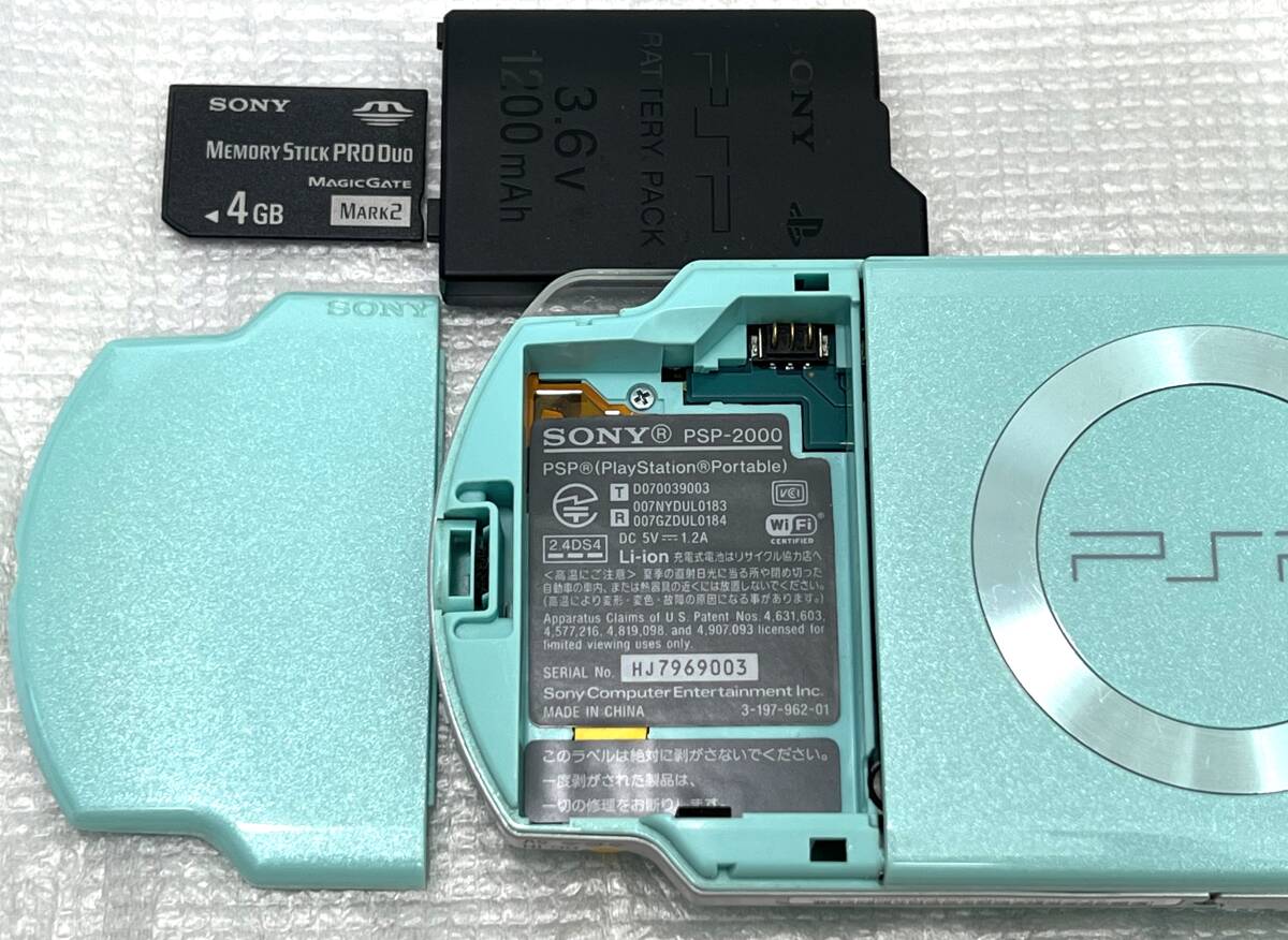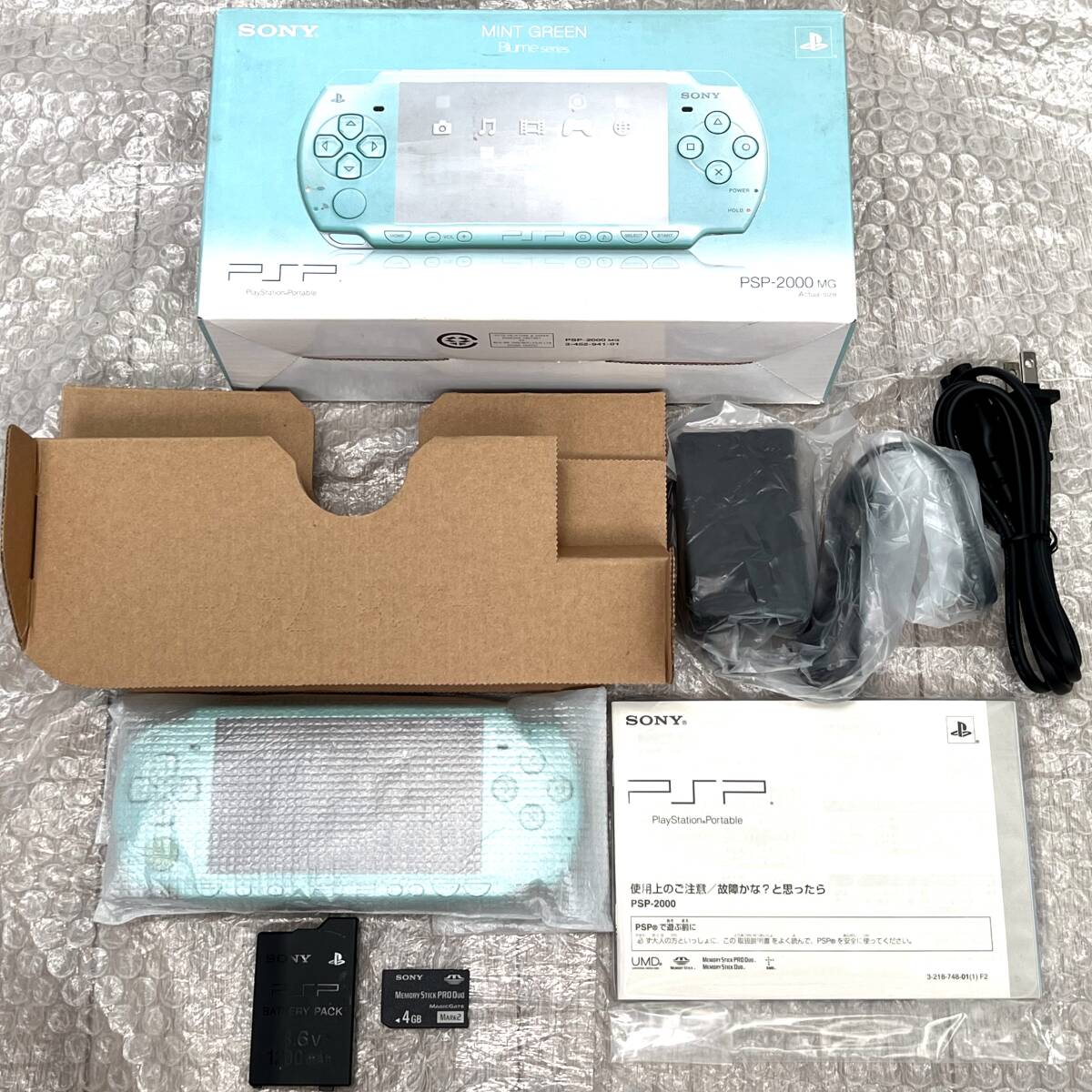 〈状態良好・箱説付属・動作確認済み〉PSP-2000 本体 ミントグリーン メモリースティック 4GB PlayStation Portable 薄型