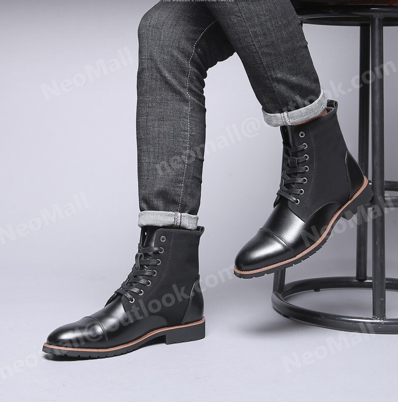 PUレザー メンズ シュートブーツ ブラック サイズ 24.5cm 革靴 靴 カジュアル 屈曲性 通勤 軽量 インポート品【n032】