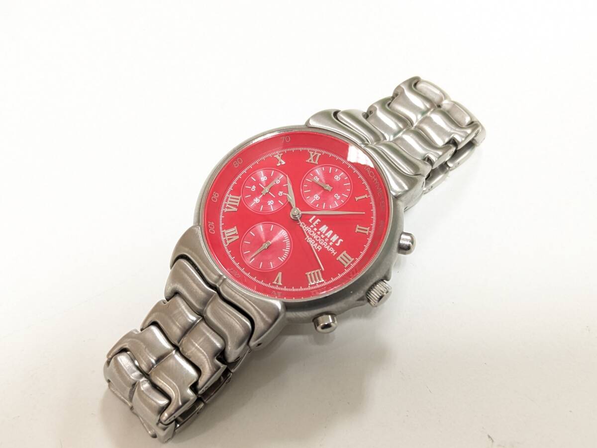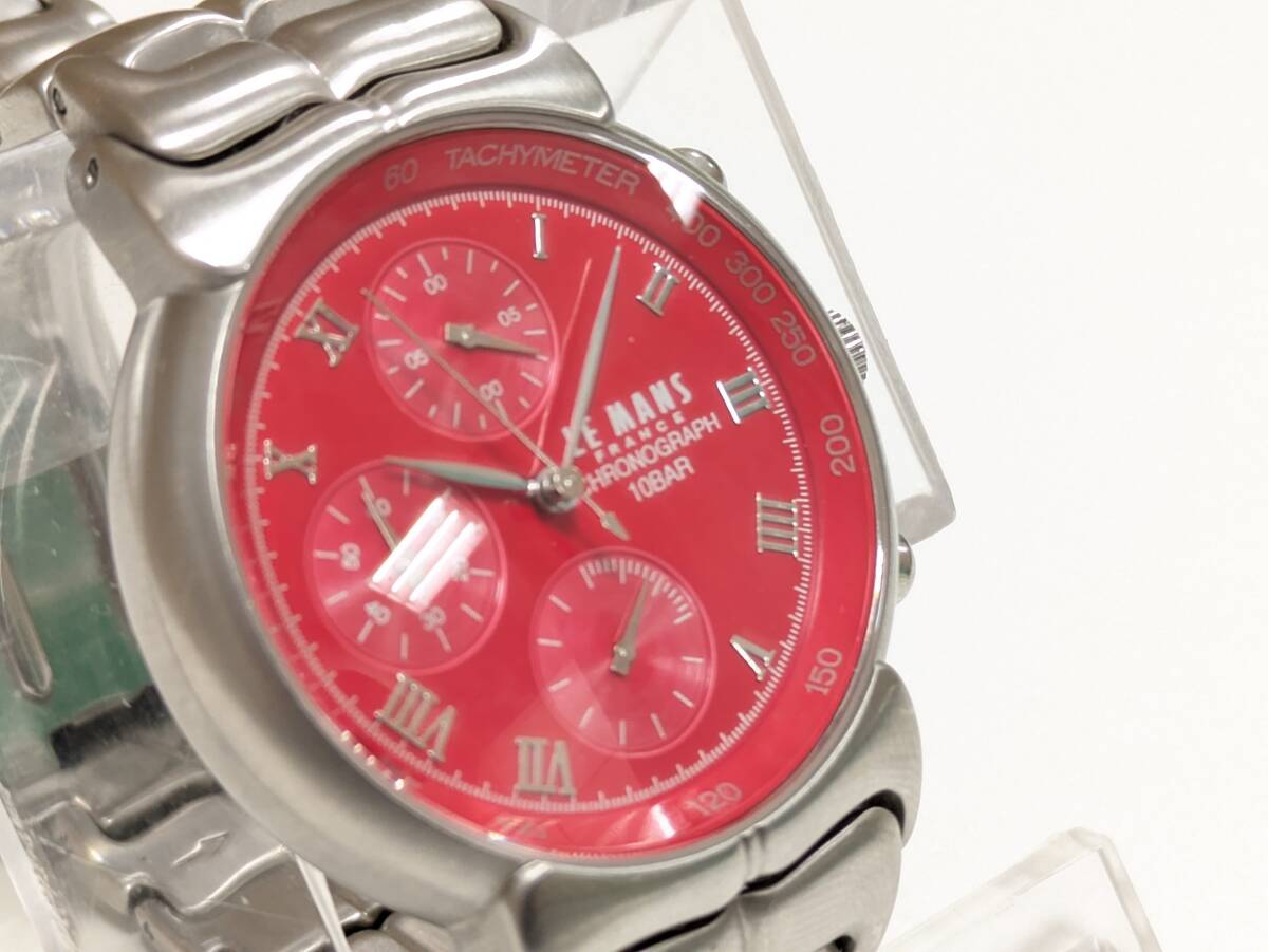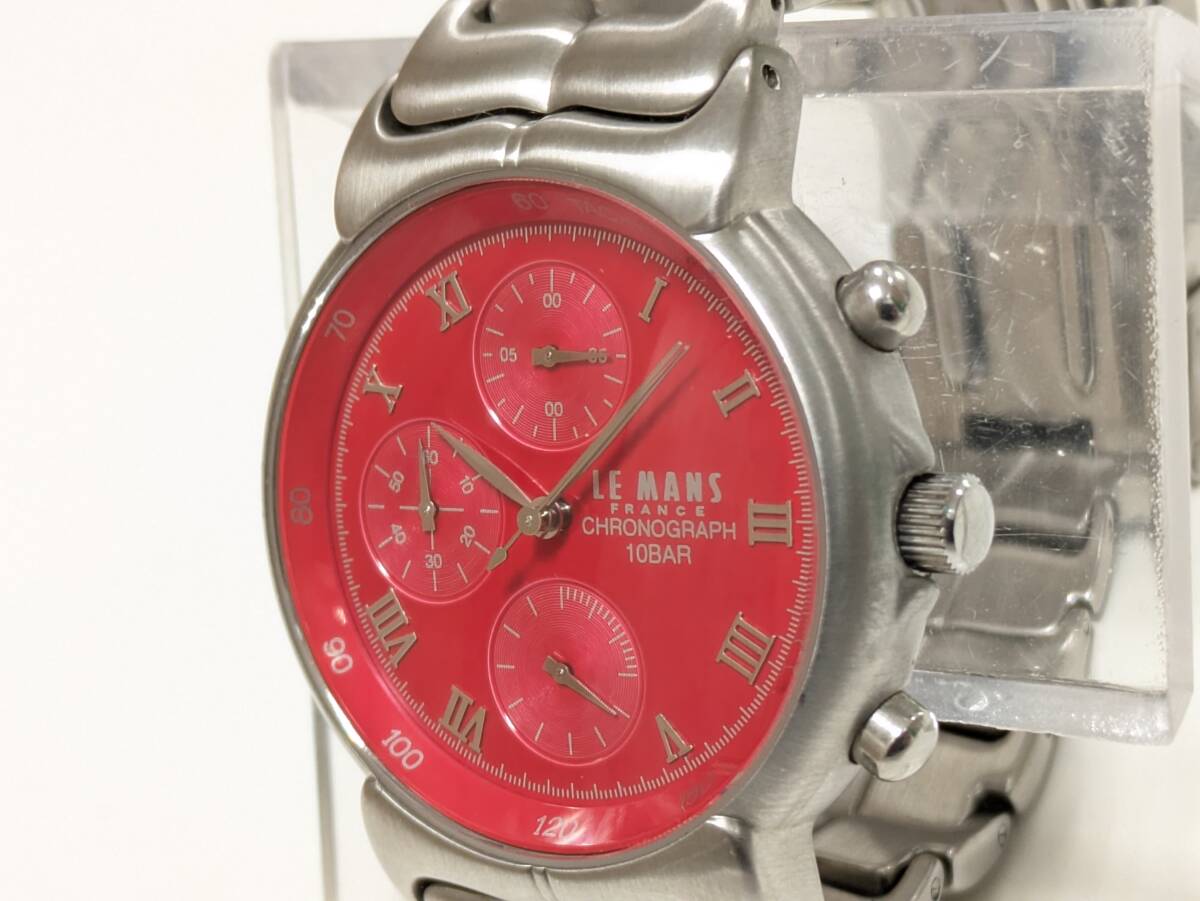 LE MANS FRANCE ル マン メンズ腕時計 クォーツ クロノグラフ 稼働 赤文字盤 中古 現状品◆28501