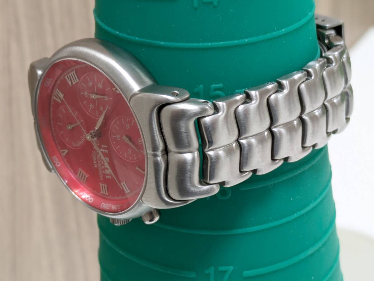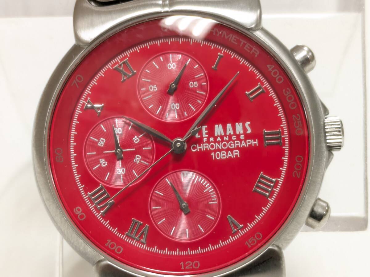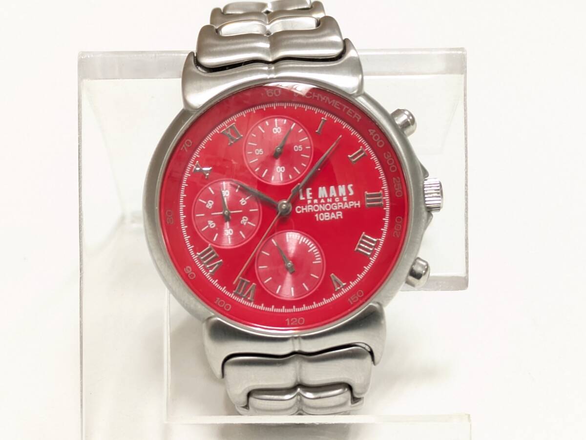 LE MANS FRANCE ル マン メンズ腕時計 クォーツ クロノグラフ 稼働 赤文字盤 中古 現状品◆28501