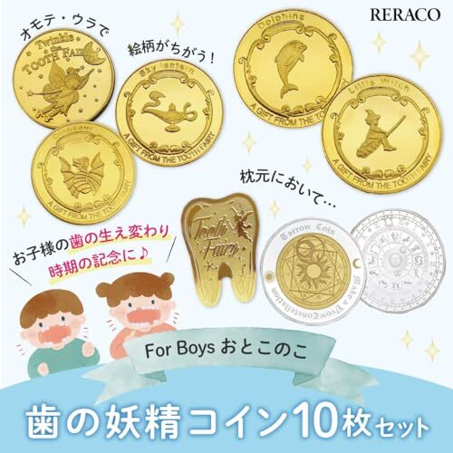 RERACO【保育士さん推薦】 歯の妖精 コイン 男の子 バラエティ 歯 妖精 乳歯 トゥースフェアリー 金貨 記念 歯の妖精コイ
