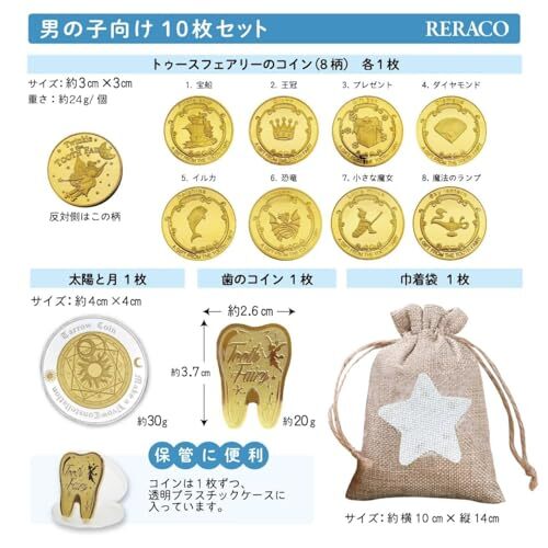 RERACO【保育士さん推薦】 歯の妖精 コイン 男の子 バラエティ 歯 妖精 乳歯 トゥースフェアリー 金貨 記念 歯の妖精コイン 歯と交換するコイン こども (男の子向け♪)
