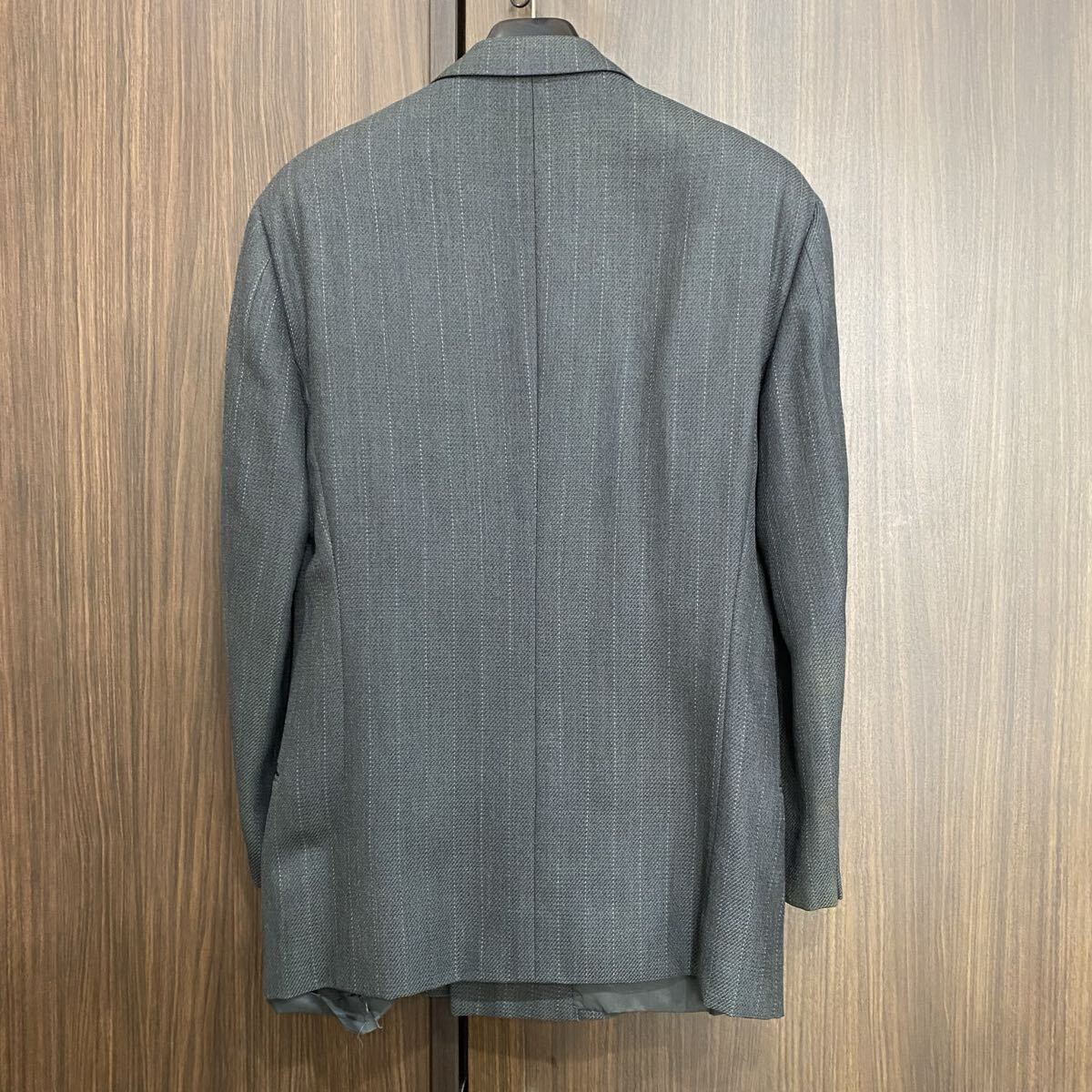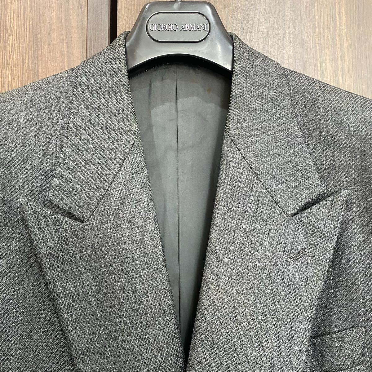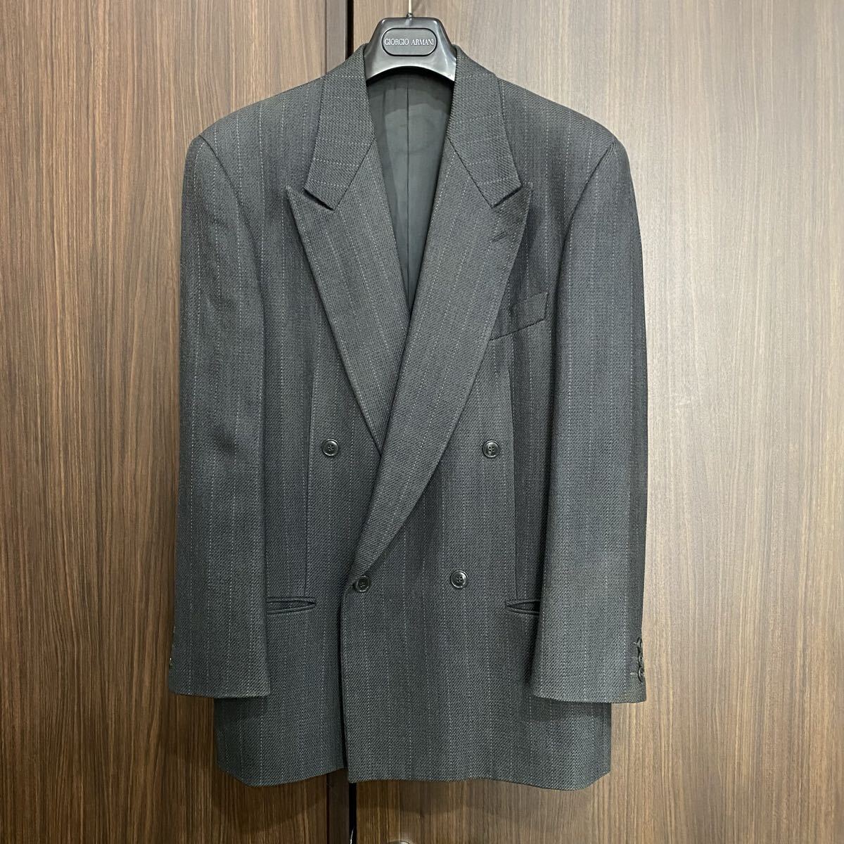 最高級 定価40万 GIORGIO ARMANI ジョルジオアルマーニ ブレザー テーラードジャケット ダブル 羊毛 グレー ストライプ 48