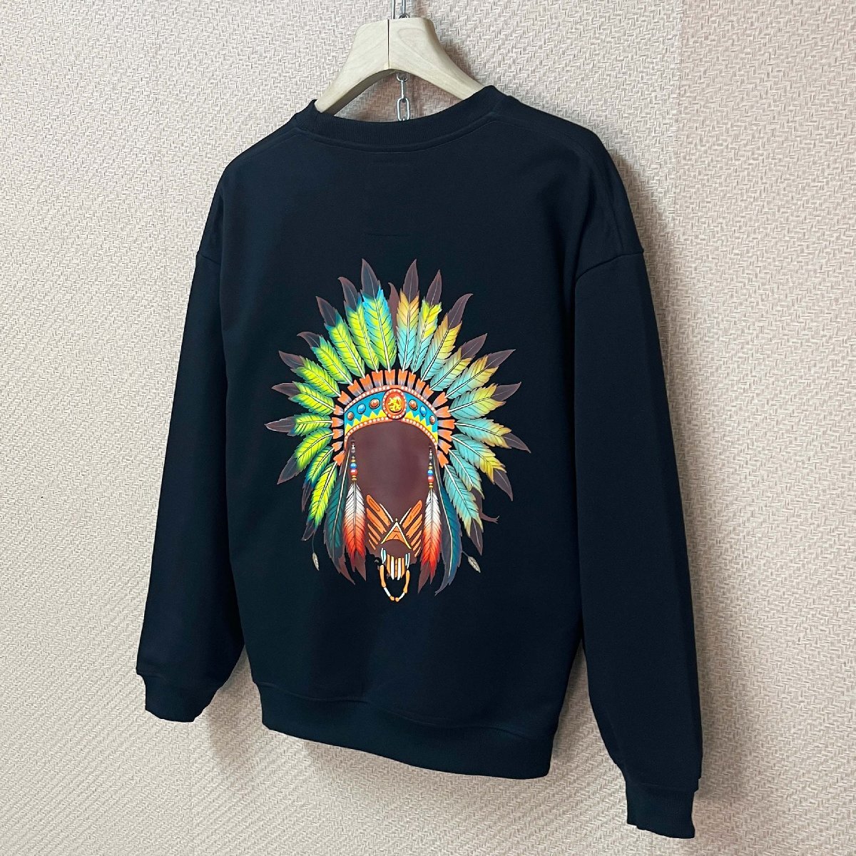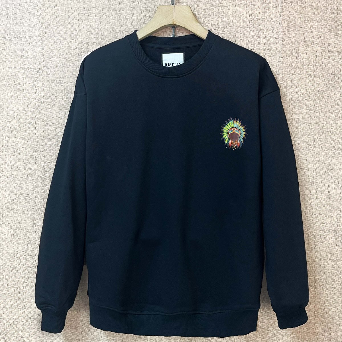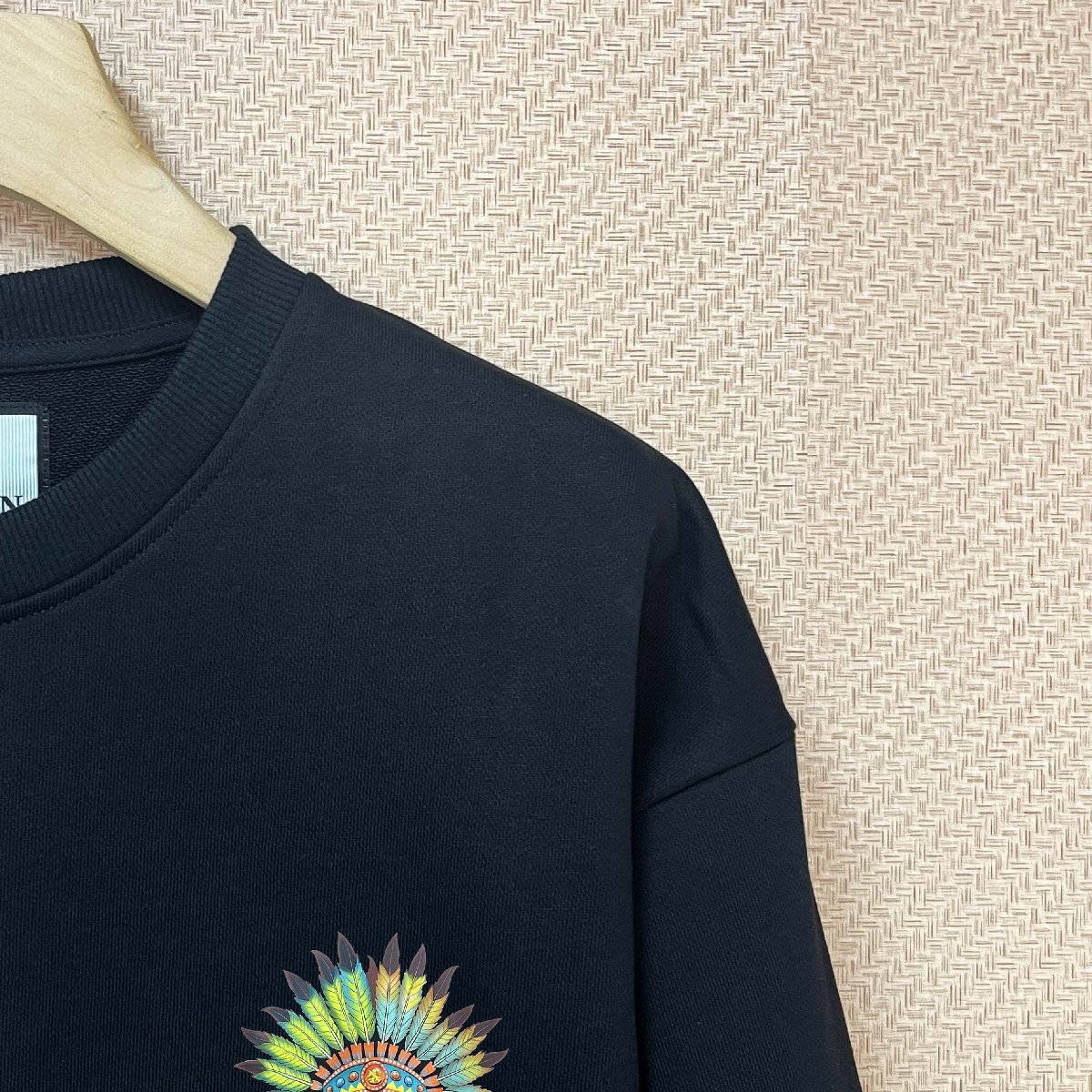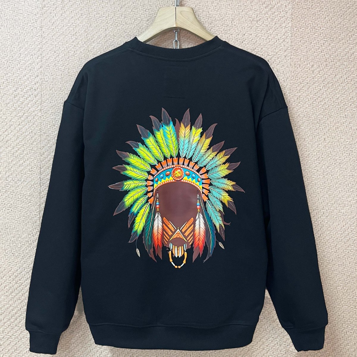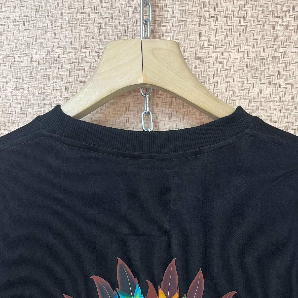 定番のクルーネック仕様で、着脱しやすいし、幅広いコーディネートに対応可能。バックと胸元には目を引くのプリントがあしらわれ、存在感抜群で周りと被らないスタイルを楽しめます。1枚で着れば主役になる存在感がたっぷりです。また、袖口と裾にリブをつけているので、窮屈な締め付けはなく、程よいフィットする感じです。