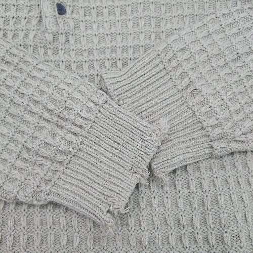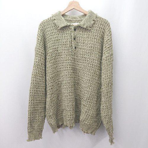 ◇ ⊇ エンダープロダクツ ハーフボタン 長袖 3Dコードヤーンダメージニット サイズM カーキ系 メンズ E