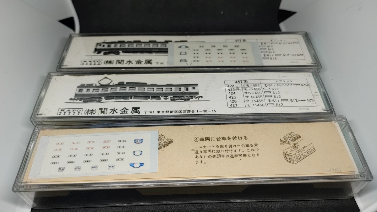 元々中古品で購入しており正しい仕様がわからないためジャンク品として出品します。モーター車はありません、クモハの検電アンテナに破損があります。古い製品で長期保管品です。ケースには傷や汚れがあります。