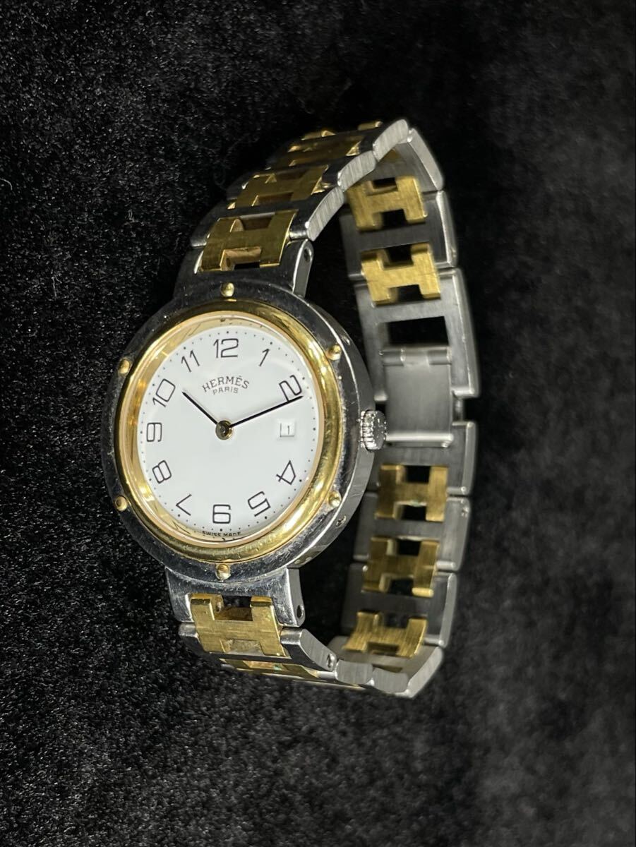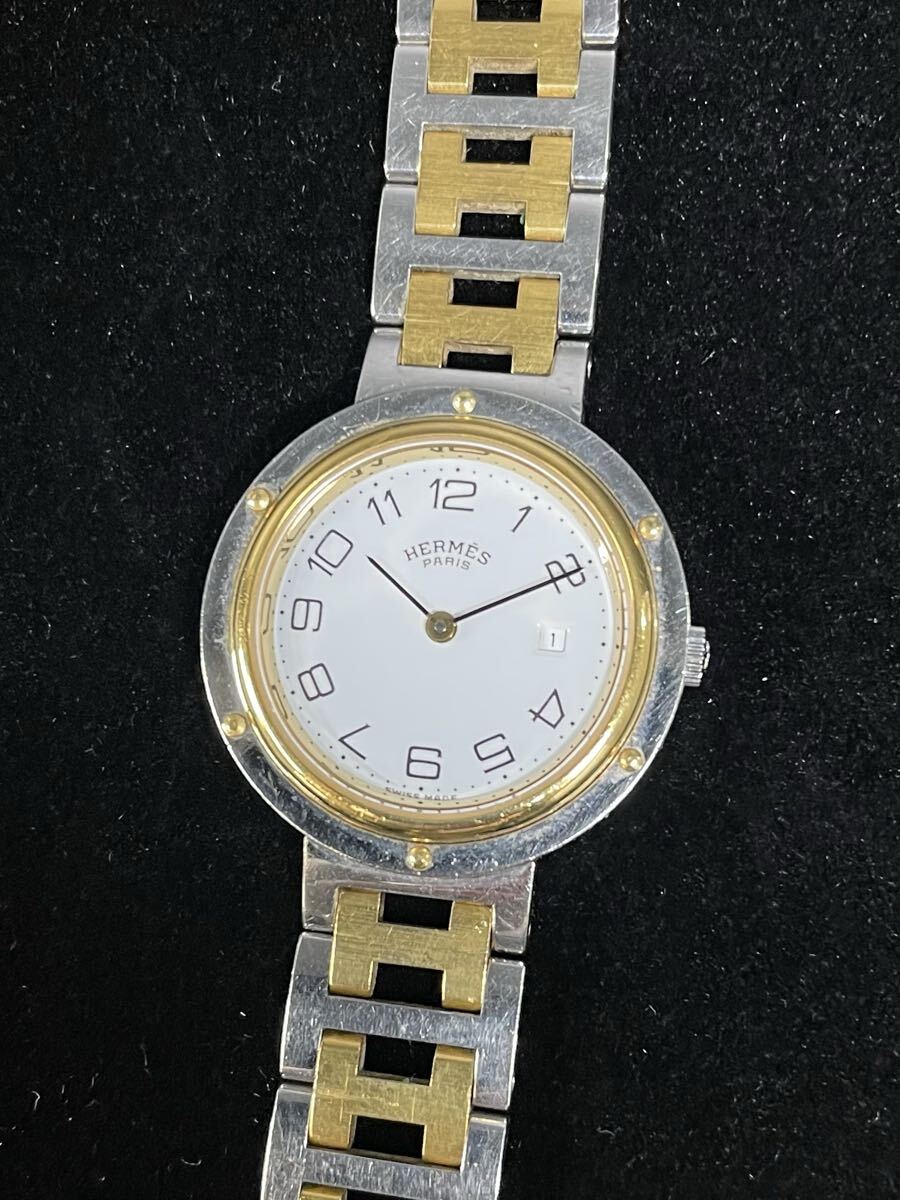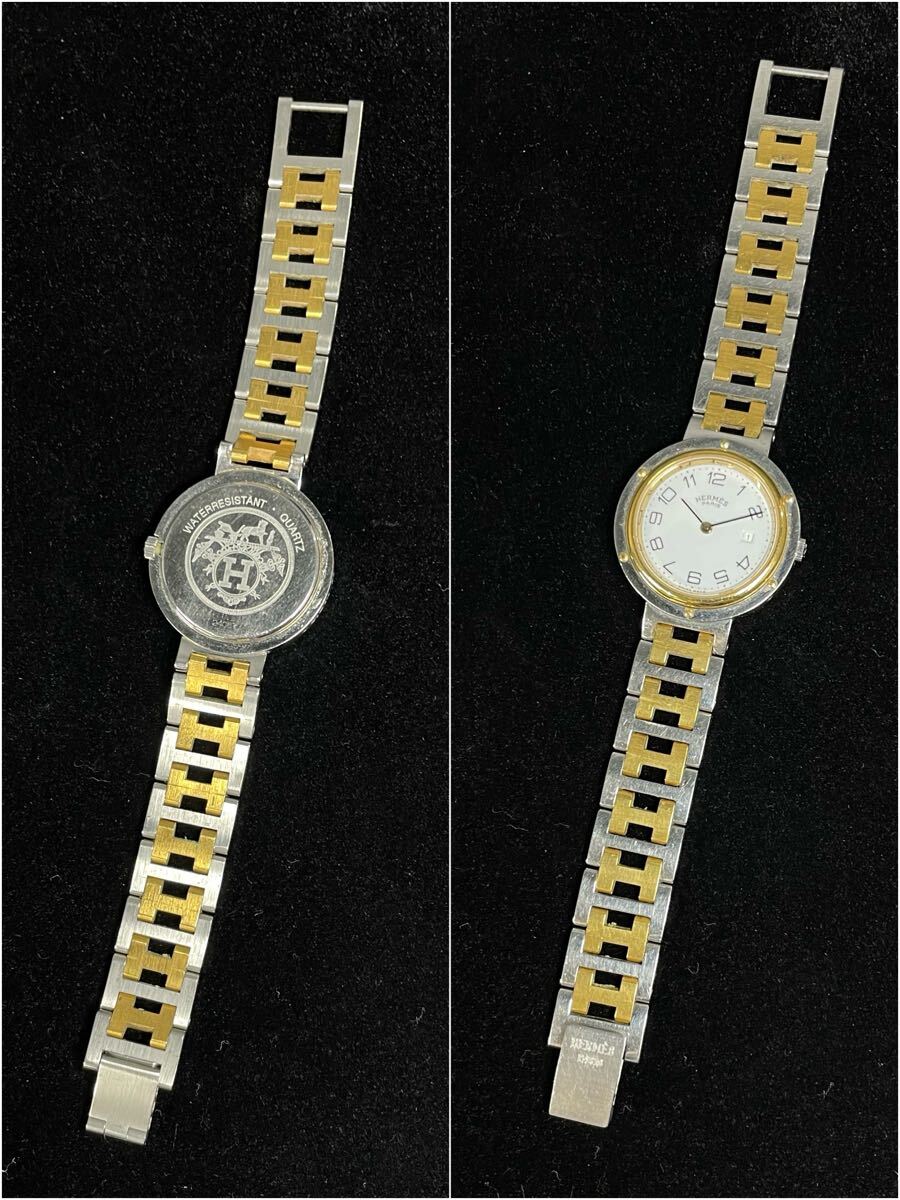 | 商品名 | E881★Herms 腕時計 クリッパー QZ デイト 2針 エルメス コンビカラー ホワイト文字盤 稼働品 |