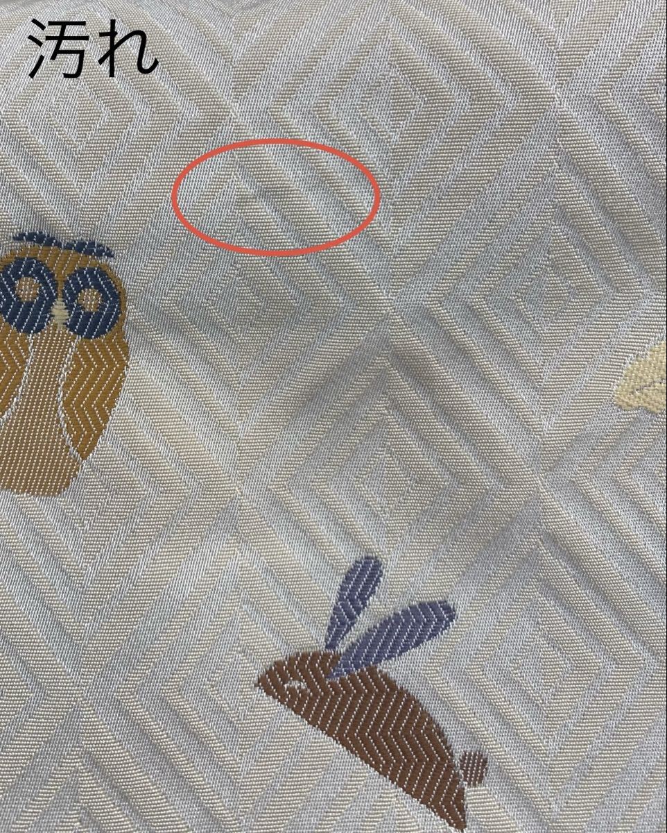 シミが所々にあり、締め後がうっすらありますが、状態は良好と判断しており、着用可能となります。