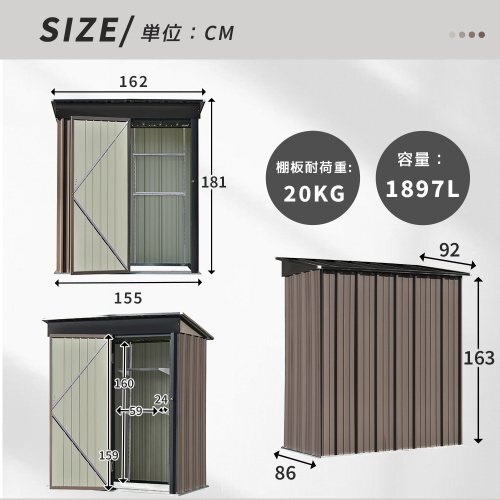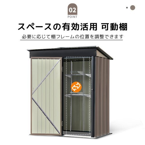 【ブラウン】物置 屋外 大型 倉庫 大型物置 戸外収納庫 物置 防水/耐侯/鍵付き 収納可能 ガーデン/庭/田畑/農場 頑丈 大容量 スチール