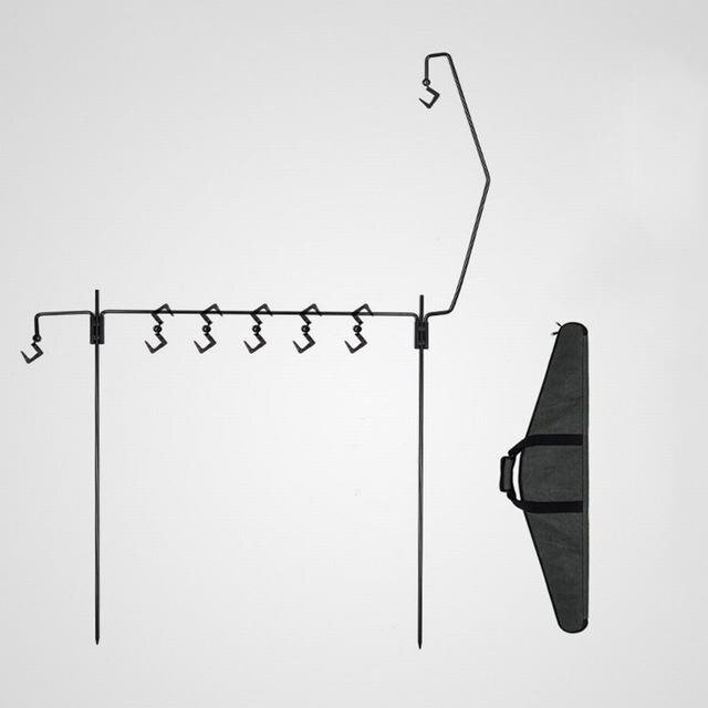 【打ち込み式?組み立て簡単】 2本の足を地面に打ち込んで、横の鉄棒を連結部分に挿して、ランタンハンガーやフックを設置するだけなので、設置に手間がかからず、一人でも簡単に組み立てられます。 ランタンハンガーの足は地面にしっかりと挿すペグ付き、それを約20cmぐらい地下に打ち込んで頂けると、より良い安定性を実現し、簡単に風で倒されません。