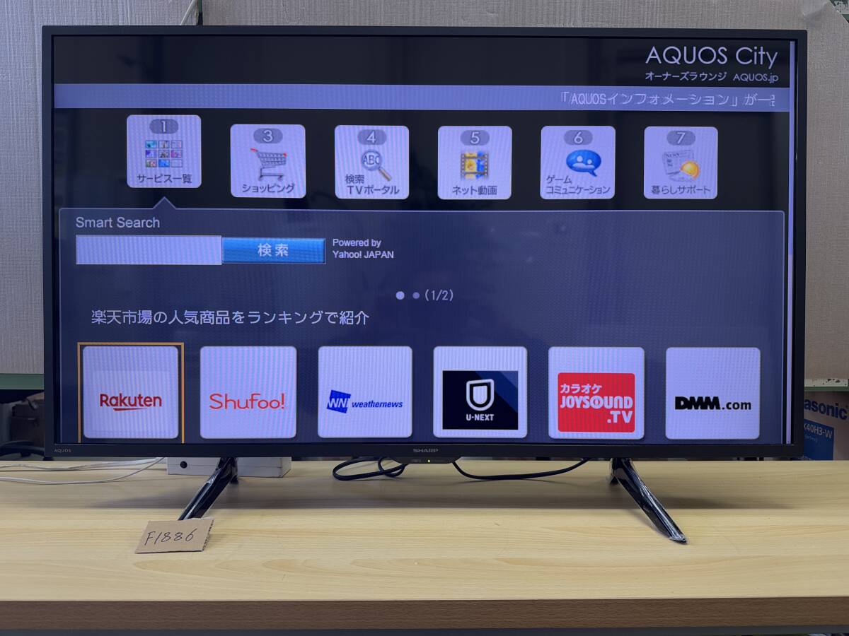 2020年製 シャープ AQUOS 42型 LED 液晶テレビ 2T-B42CB1 AQUOS City接続可 ネット動画 u-next DMM 視聴可能 管理番号F1886