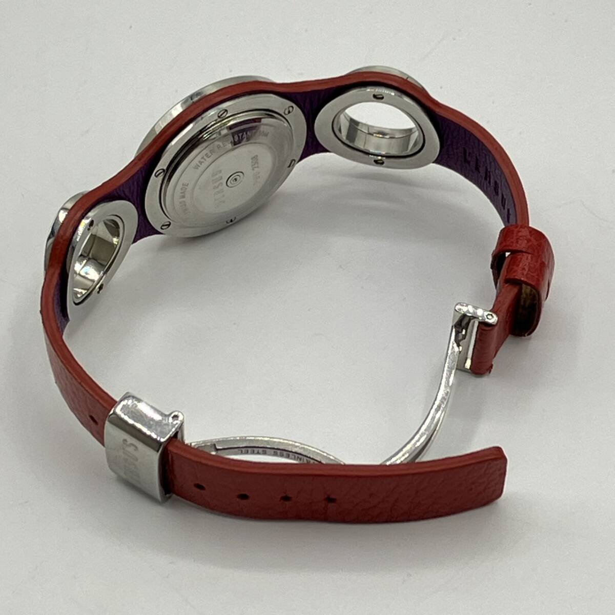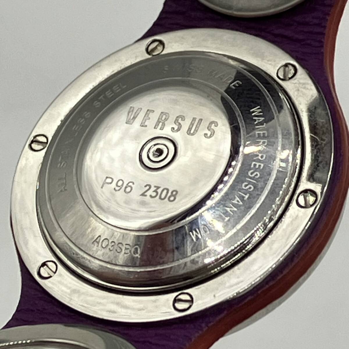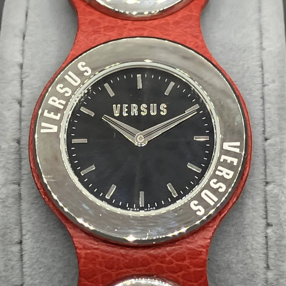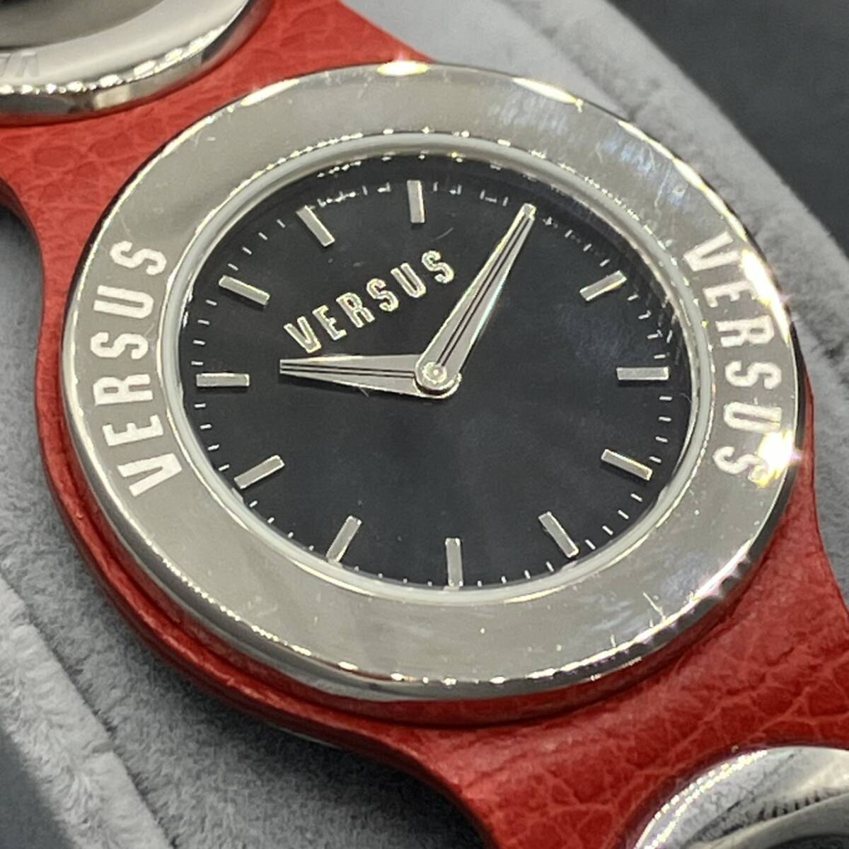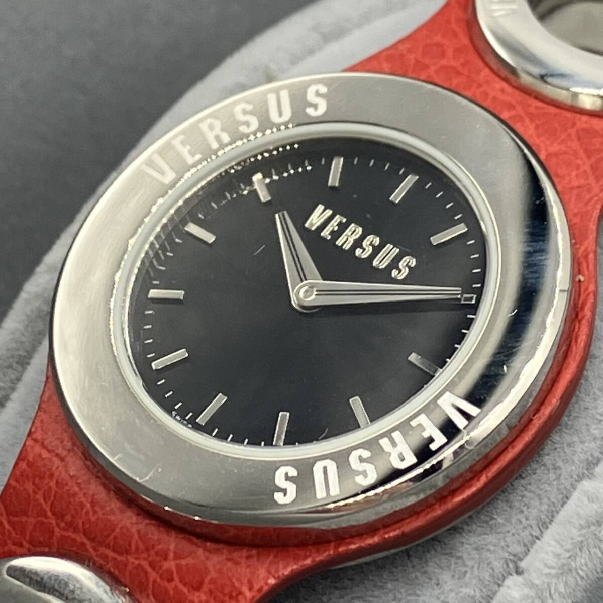 | VERSUS ヴェルサス レザーバングルウォッチ 黒文字盤 腕時計 P96 2308 稼働確認済み 箱付き ユニセックス |