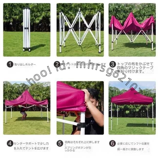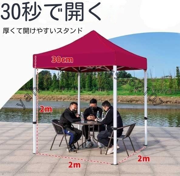 タープテント 2m*2m ワンタッチ テント 高さ調整可能 商用 出店に用 駐車テント ベンチレーションタープ 日よけ 耐水 撥水 UVカット