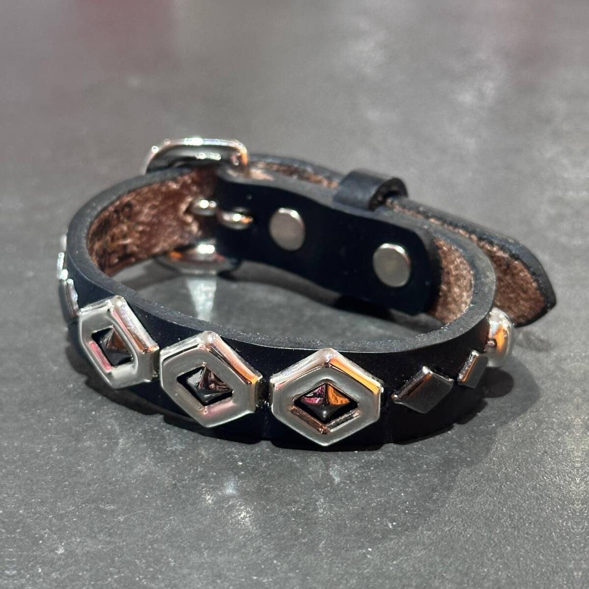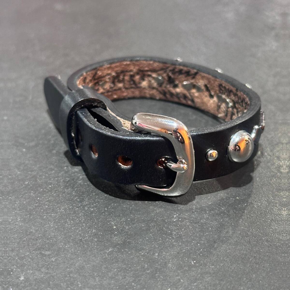 WOLF'S HEAD × COMME des GARCONS レザースタッズブレスレット 革ベルト ウルフズヘッド × コムデギャルソン ブラック F (1956M)