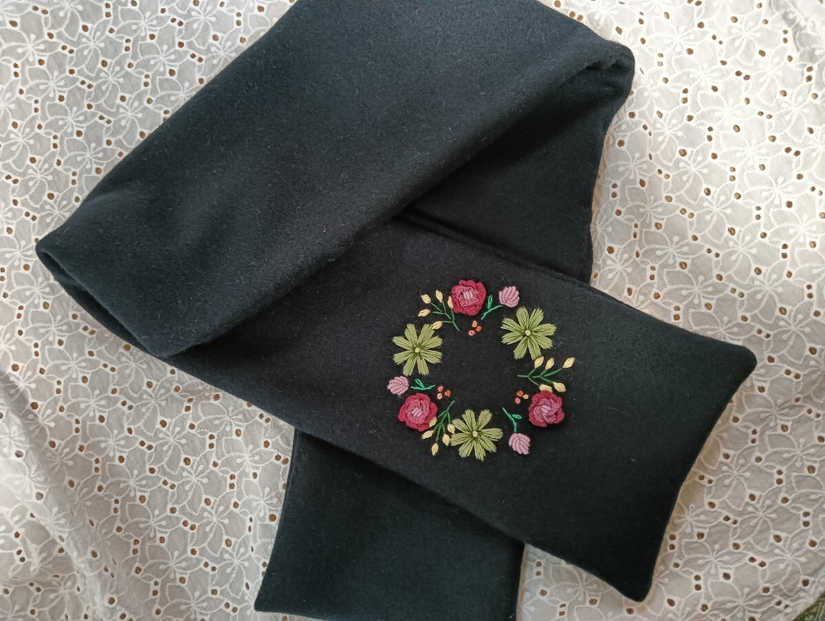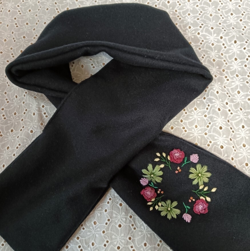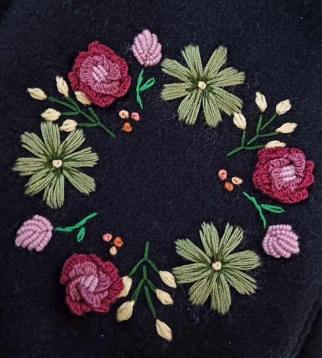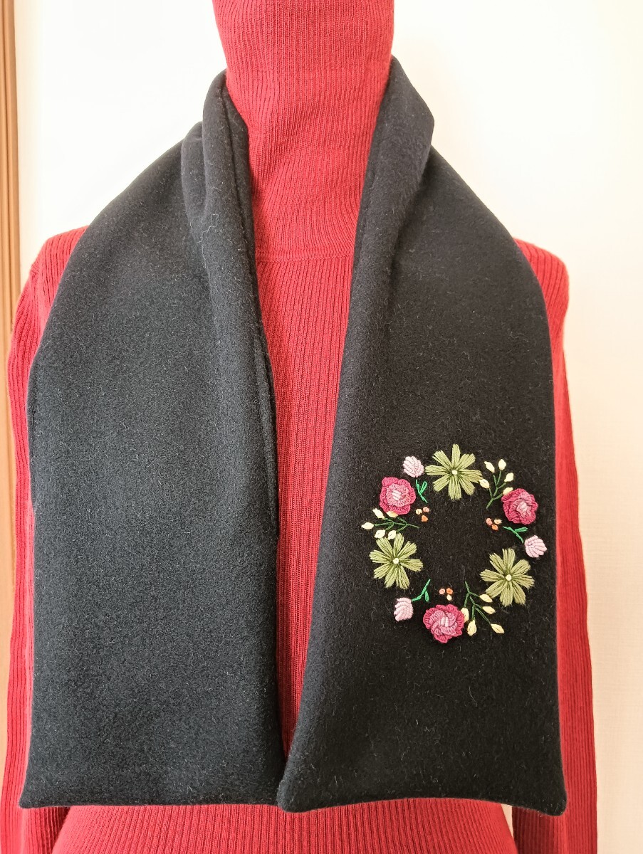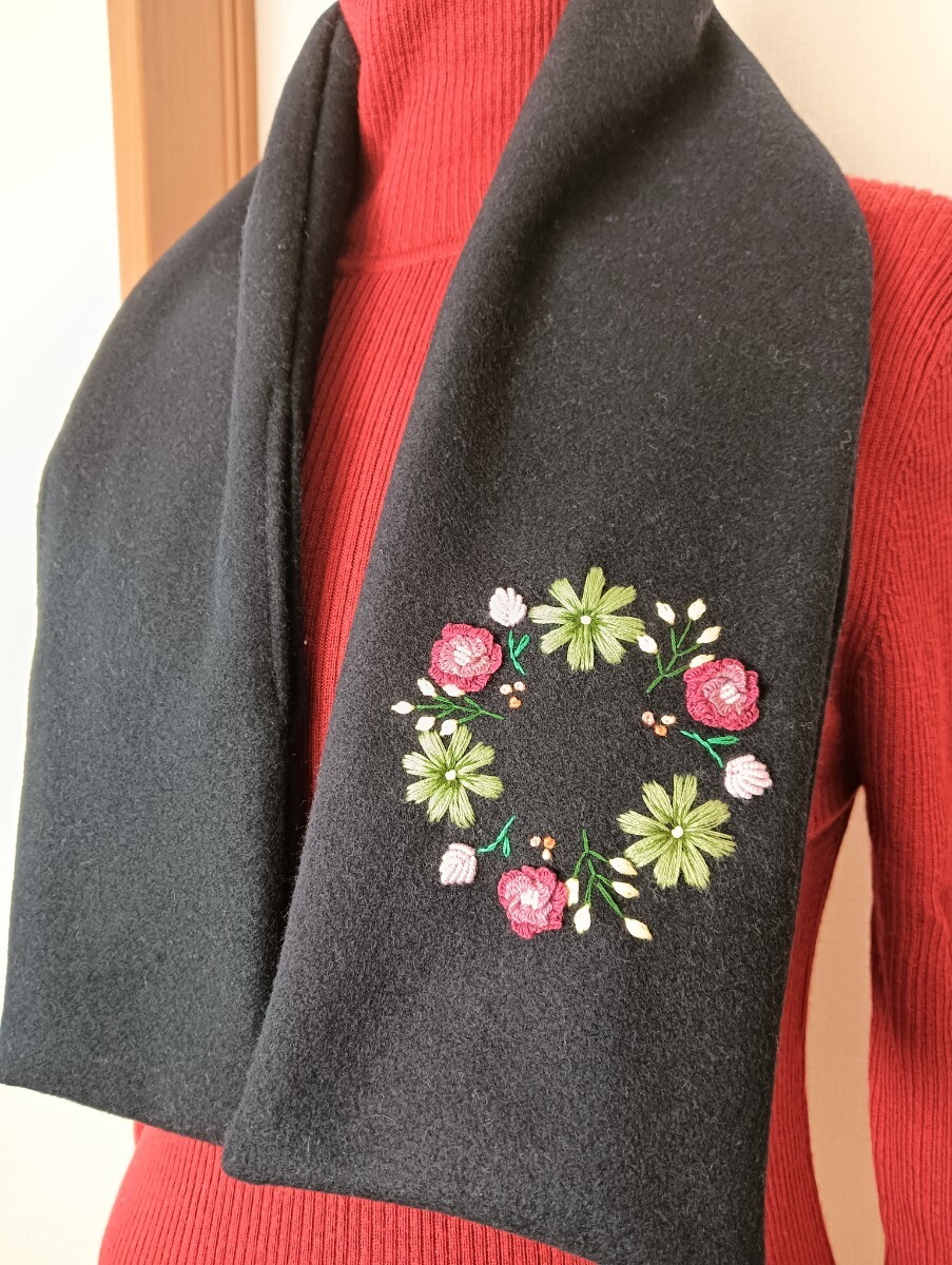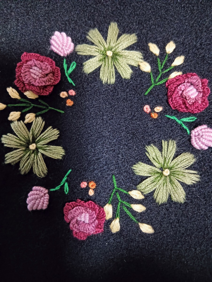 下書きの出来ない素材の為、フリーハンドで刺繍しました