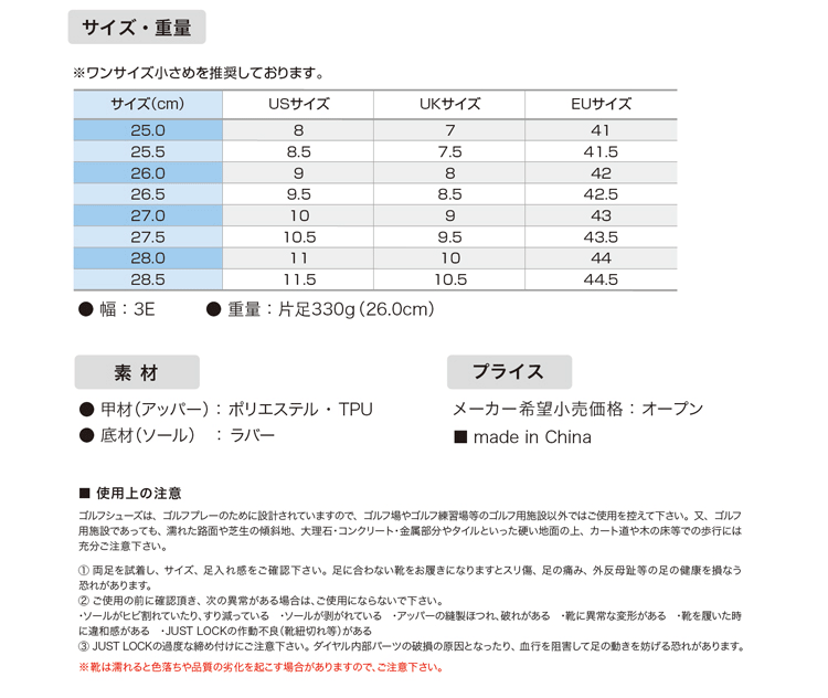 【商品特徴】 コースでも練習場でも使用できるカジュアルスタイルのゴルフシューズ「Lynx SK-55(リンクス エスケー-55)」。 目を惹くポップなカラーリング、足の形に沿うホールド感、脱ぎ履きしやすいダイヤルなど、魅力溢れるゴルフシューズです。 【商品詳細】 ●状態:新品・未使用品 ●サイズ:28.5cm ●幅:3E ●重量:片足330g(参考サイズ26.0cm) ●甲材(アッパー):ポリエステル/TPU ●底材(ソール):ラバー ※撮影時の光量の具合や、ご覧いただいております画面環境によりまして、実際の商品と若干色味が違う場合がございます。 ※メーカーHPには、ワンサイズ小さめを推奨しております記載がございます。ご参考までにお願い申し上げます。