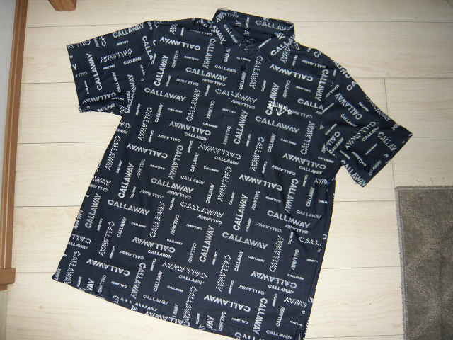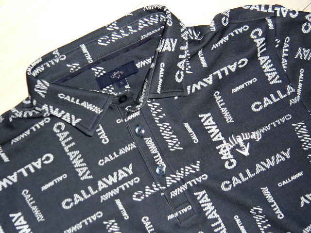 キャロウェイ 大きいサイズ3L 総柄半袖ポロシャツ やや黒っぽいネイビー 中古良品