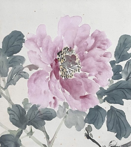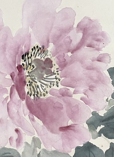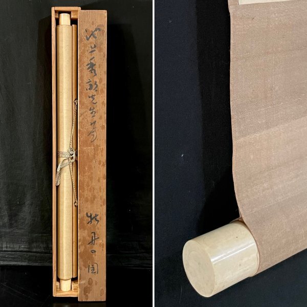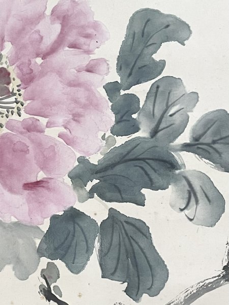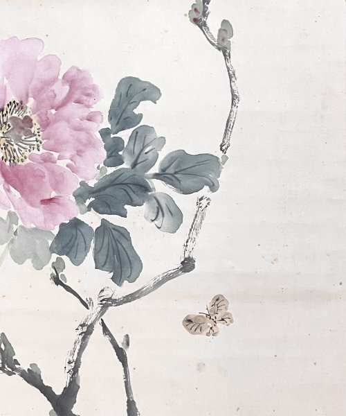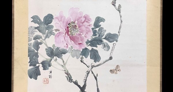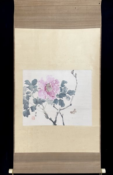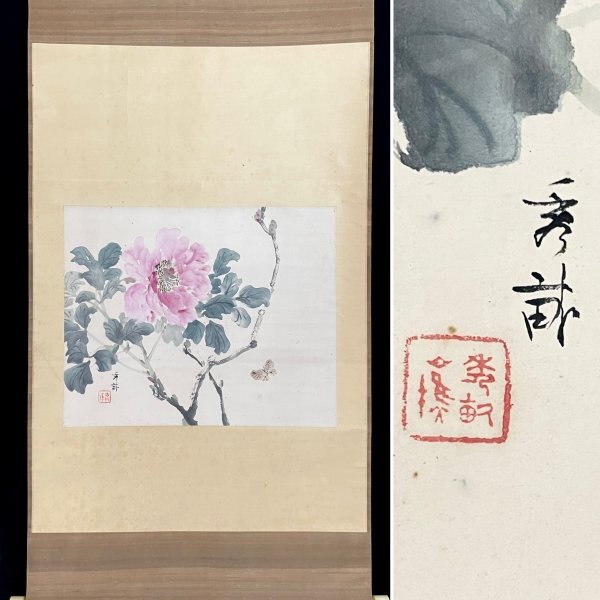 1HM29[真作]池上秀敏「牡丹」掛軸 絹本 肉筆 花図 /荒木寛畝師事 明治時代 長野の人 合箱