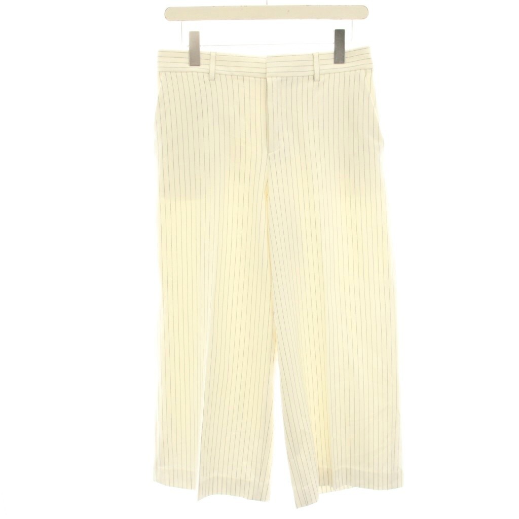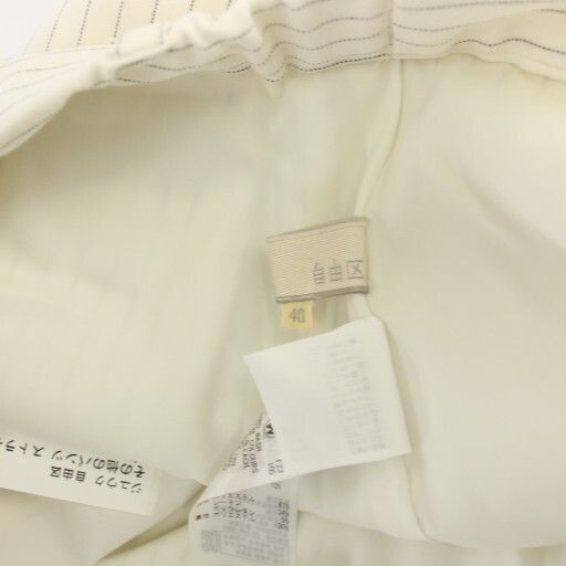 自由区 オンワード樫山 ワイドパンツ イージー ストライプ 40 白 ホワイト PRWMKA1229 /HN レディース