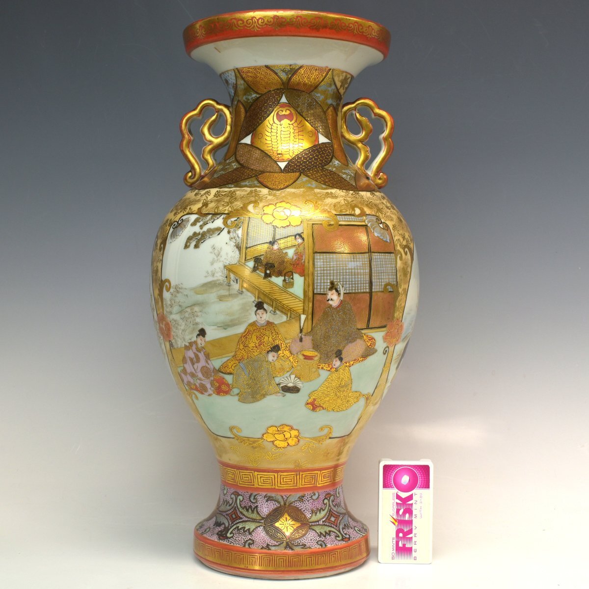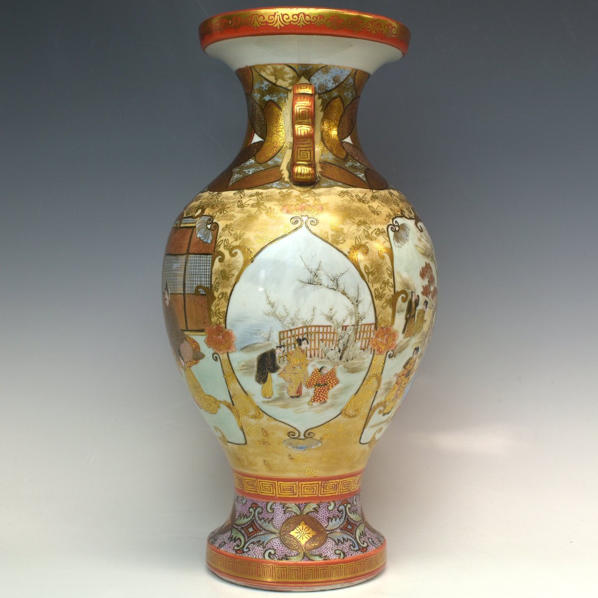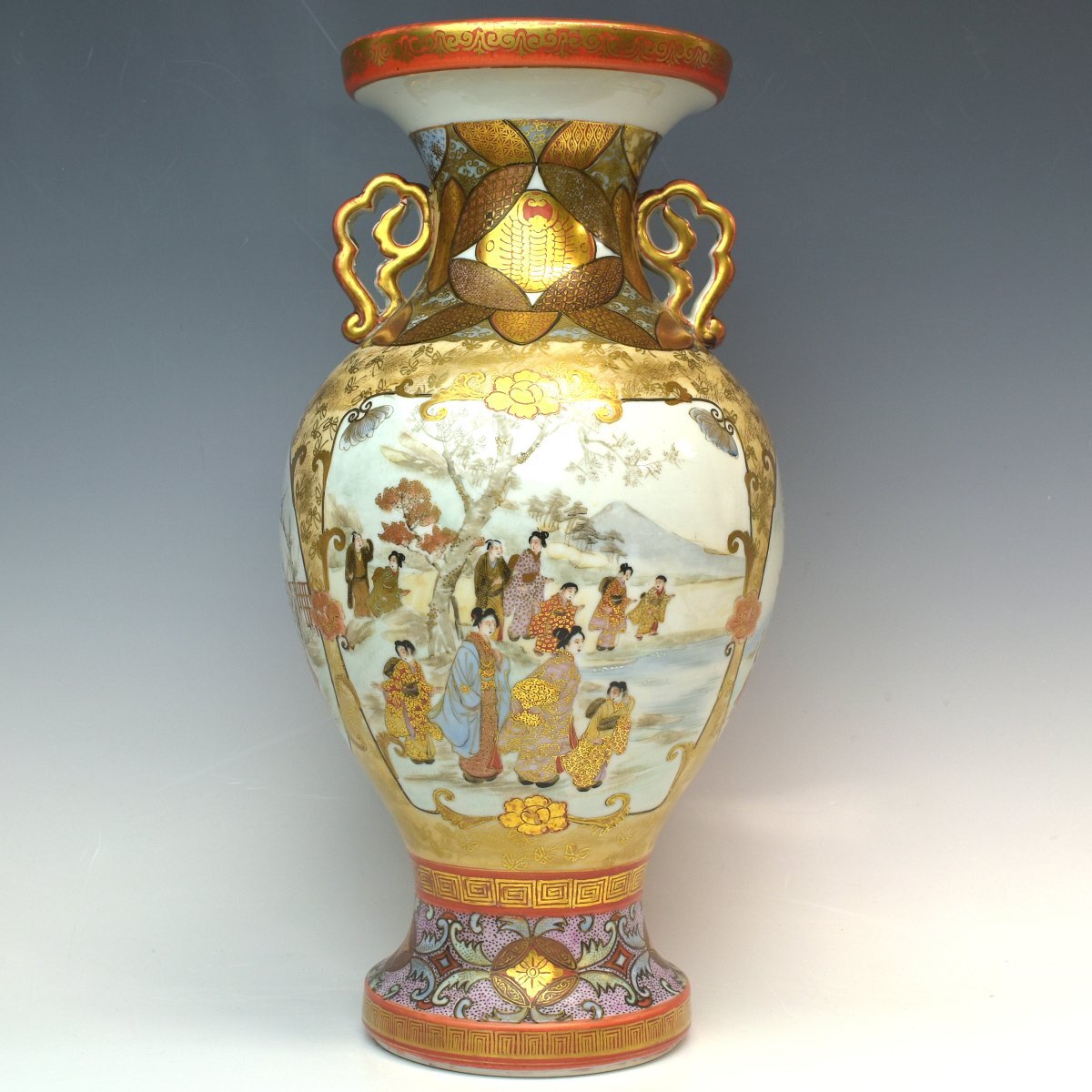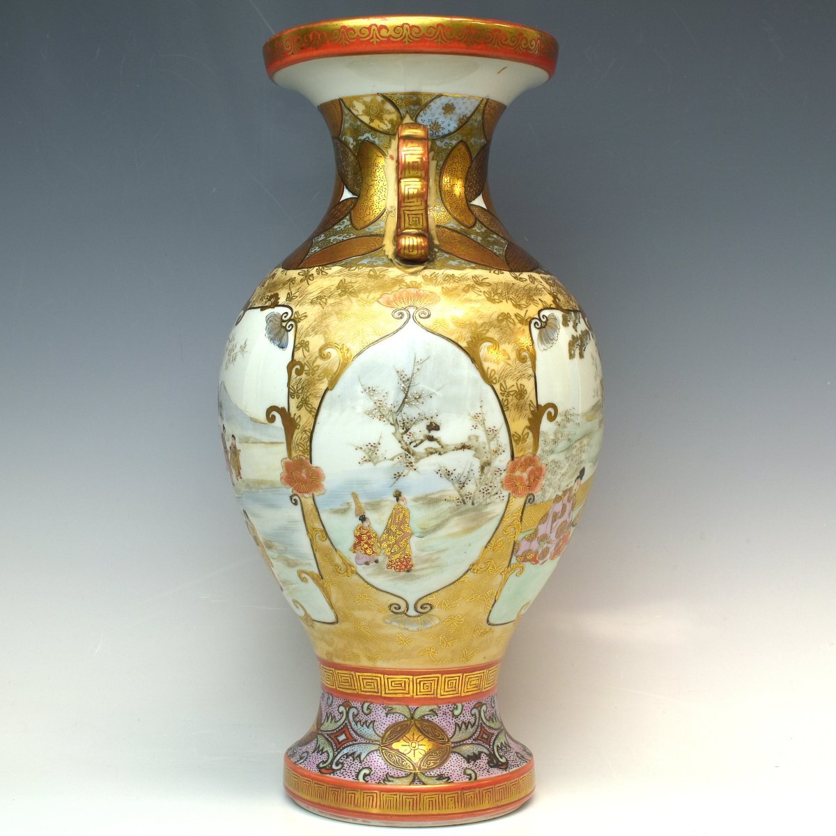 | 商品名 | 明治時代 九谷焼 【金襴手 人物図細密小文 花瓶】 高さ36cm 上手 本物保証 K2191 【趣楽】 | ||