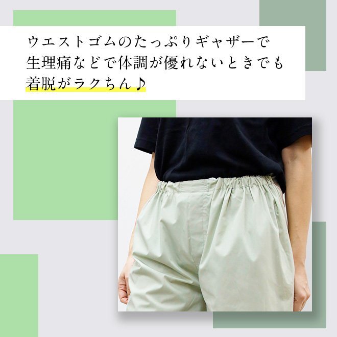 ・内側には透湿性のある防水布を使用しており、万が一、経血や尿が