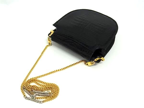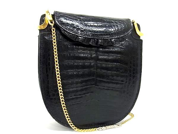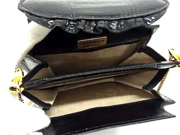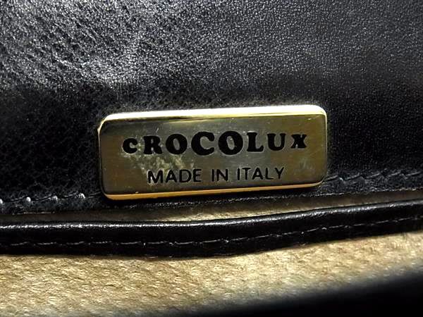 1円 ■極上■本物■ cROCOLUx クロコラックス クロコダイル クロスボディ ショルダーバッグ ポシェット 斜め掛け ブラック系 FU2715
