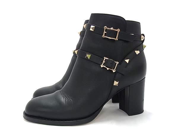 1円 ■美品■ VALENTINO GARAVANI ヴァレンティノ ガラヴァーニ レザー ブーツ サイズ35(約22cm) 靴 レディース ブラック系 FT2435